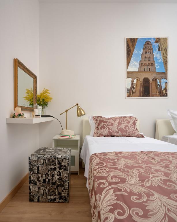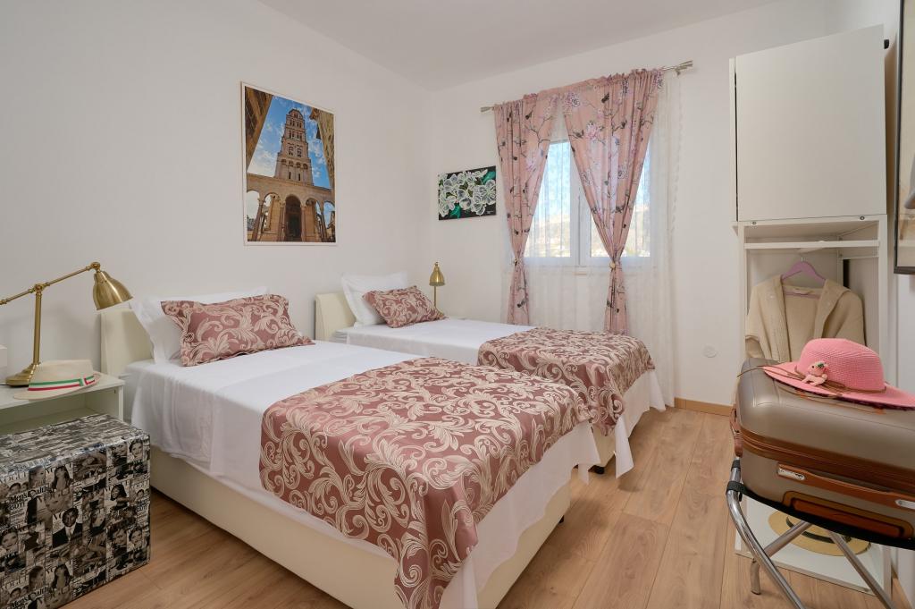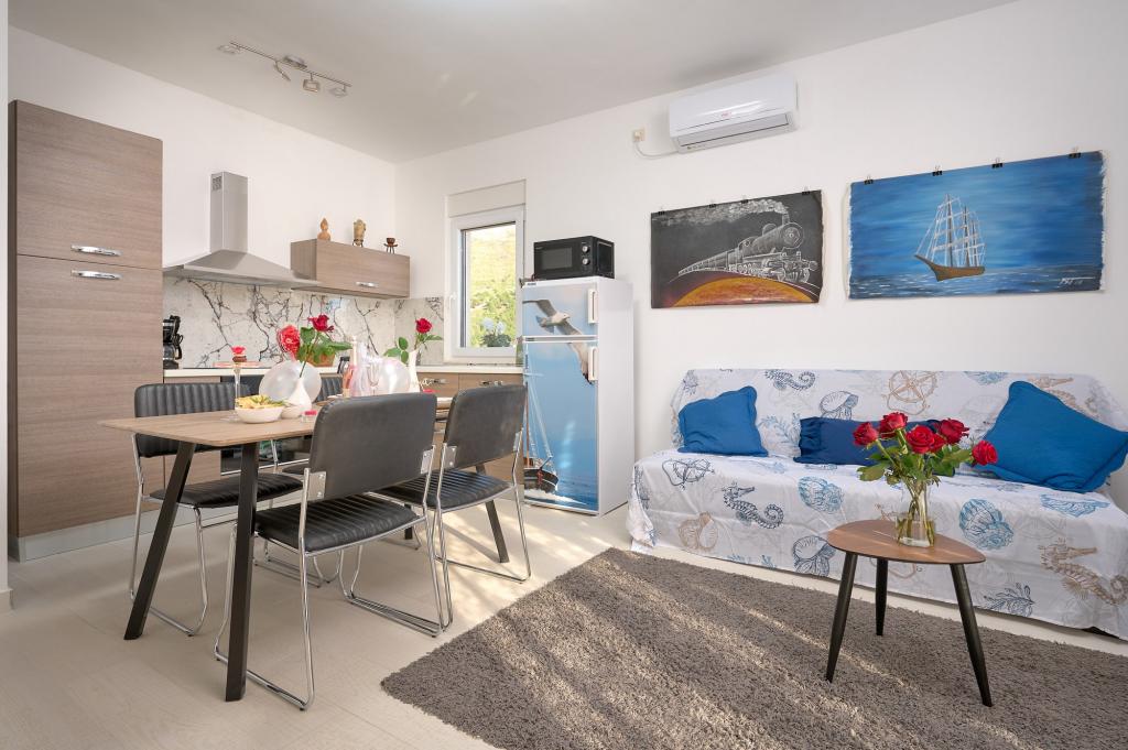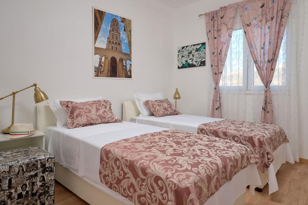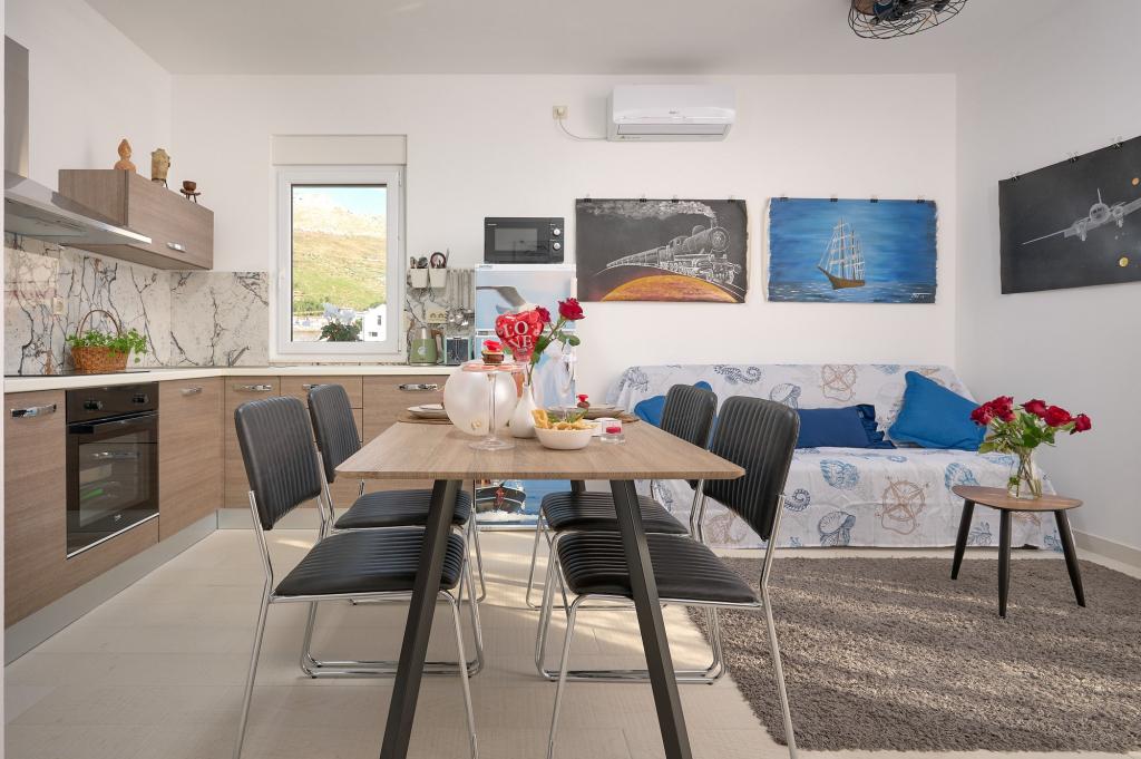 Trije prenovljeni apartmaji "Sita" se nahajajo v Podstrani, tik ob morju. Ta obmorska oaza, ki se ponaša z neokrnjenimi plažami in kristalno čistim morjem, je popolna destinacija za družine in vse tiste, ki iščejo miren pristan v majhnem mestu z vznemirljivostjo in kulturnim bogastvom bližnjega Splita. Vsak od naših apartmajev izžareva zračnost in udobje, saj ponuja dve spalnici, moderno kopalnico, funkcionalno kuhinjo z integrirano dnevno sobo in zasebni balkon s pogledom na morje. Za vaše nemotene počitnice je vsak apartma skrbno zasnovan in opremljen s sodobno opremo: klimatska naprava, WiFi, TV. Parkirišče je v sklopu nepremičnine, medtem ko bližina restavracij, trgovin, prodnatih plaž in športnih igrišč ponuja nešteto možnosti za raziskovanje in aktivnosti.