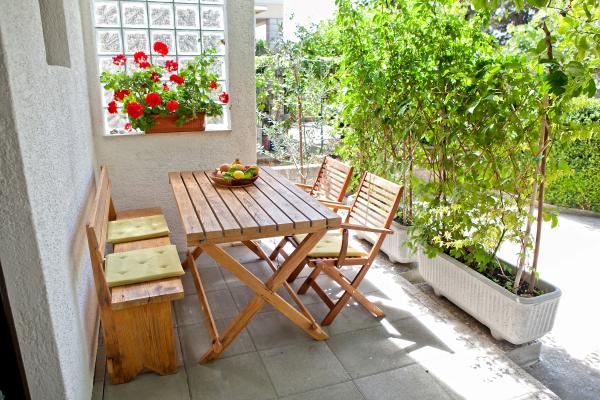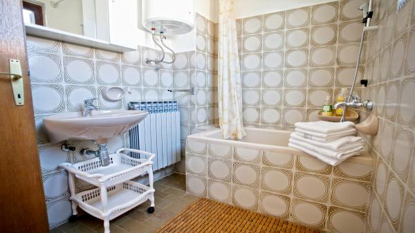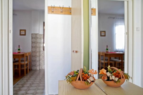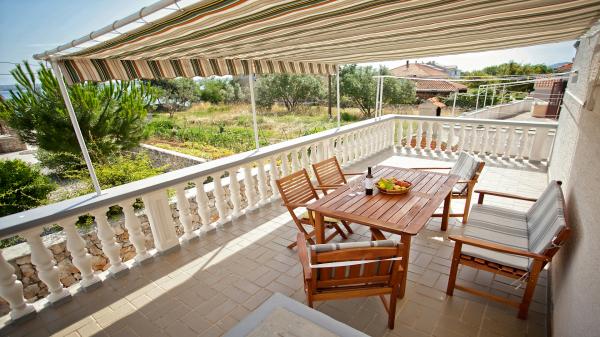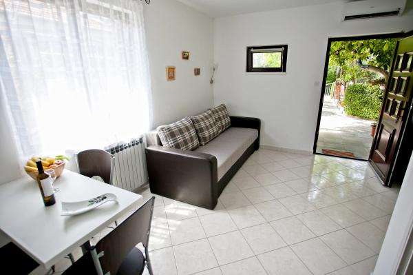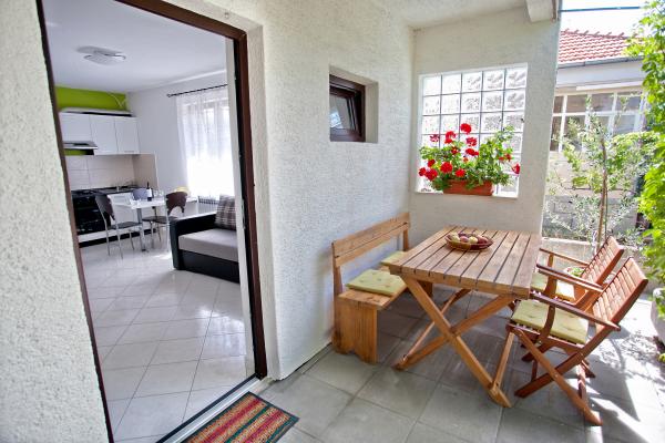 Družinska hiša, kjer se nahajata dva apartmaja za najemnino. Vsak se osredotoča na svoji strani hiše, zato sem bila zagotovljena mir in red na čas, porabljen je bil dobro izkoriščen. Hiša je obdana z zelenjem in je zelo prijetna za bivanje, še posebej v poletnih mesecih, ko je sonce najmočnejše ogrevana. Hiša se nahaja ob morju z bližnjo javno plažo in igrišče. Sosedje so starejši ljudje, ki ljubijo mir, tudi tako, da je mir mogoče zagotoviti z gostitelja in drugih prebivalcev v mestu. Mesto je naseljeno različne starostne razlike, predvsem mlajšo populacijo v poletnih mesecih.