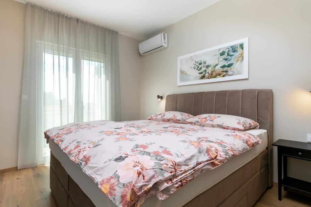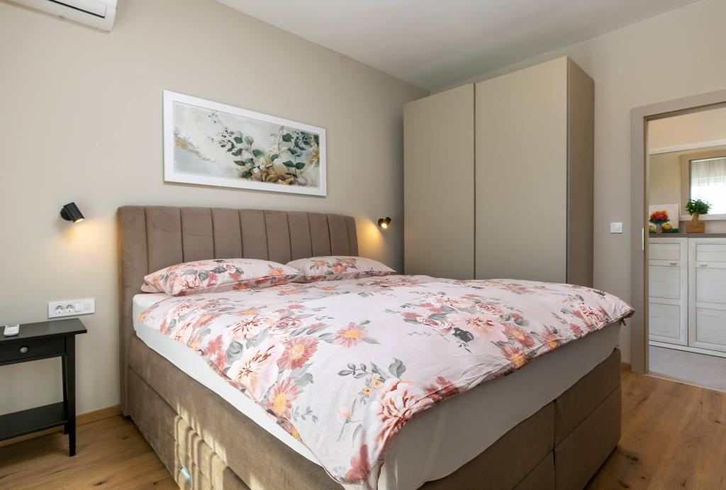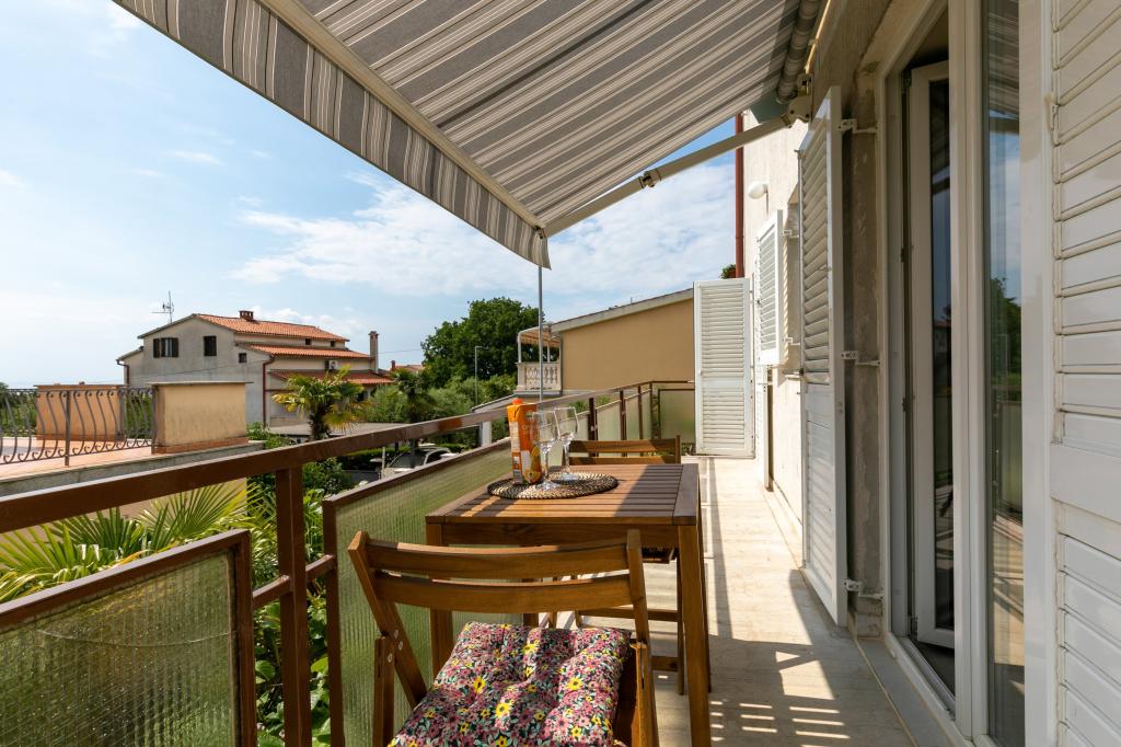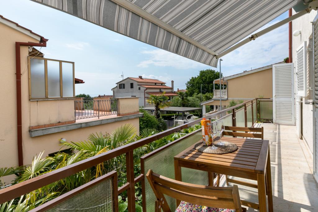 Poreč, Apartma Nona Ana, na novo prenovljen apartma z eno spalnico, kopalnico, prostorno dnevno sobo z jedilnico in kuhinjo ter balkonom. Kuhinja je opremljena s pomivalnim strojem, mikrovalovno pečico, pečico, aparatom za filter kavo in aparatom za espresso kavo, grelnikom vode in opekačem kruha. Apartma ima tudi TV-SAT, Wi-Fi, sušilnik za lase, likalnik za likanje oblačil in pralni stroj v kopalnici. Stanovanje se ogreva in hladi preko inverterske klimatske naprave, ki se nahaja v dnevni sobi in spalnici. Stanovanje se nahaja v 1. nadstropju. Parkirni prostor zagotovljen na dvorišču. Oddaljenost od morja je le 900m-1000m, oddaljenost od tržnice 500m, restavracija 600m, oddaljenost od centra 2500m.