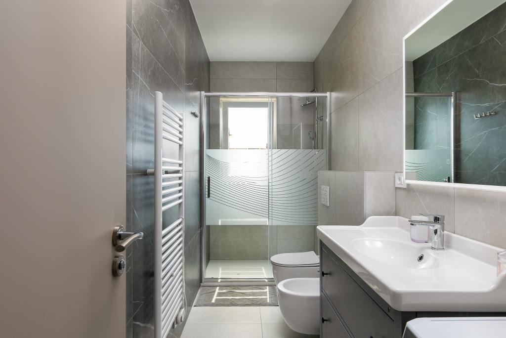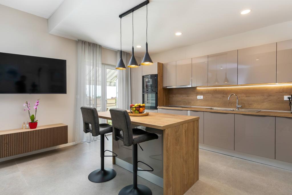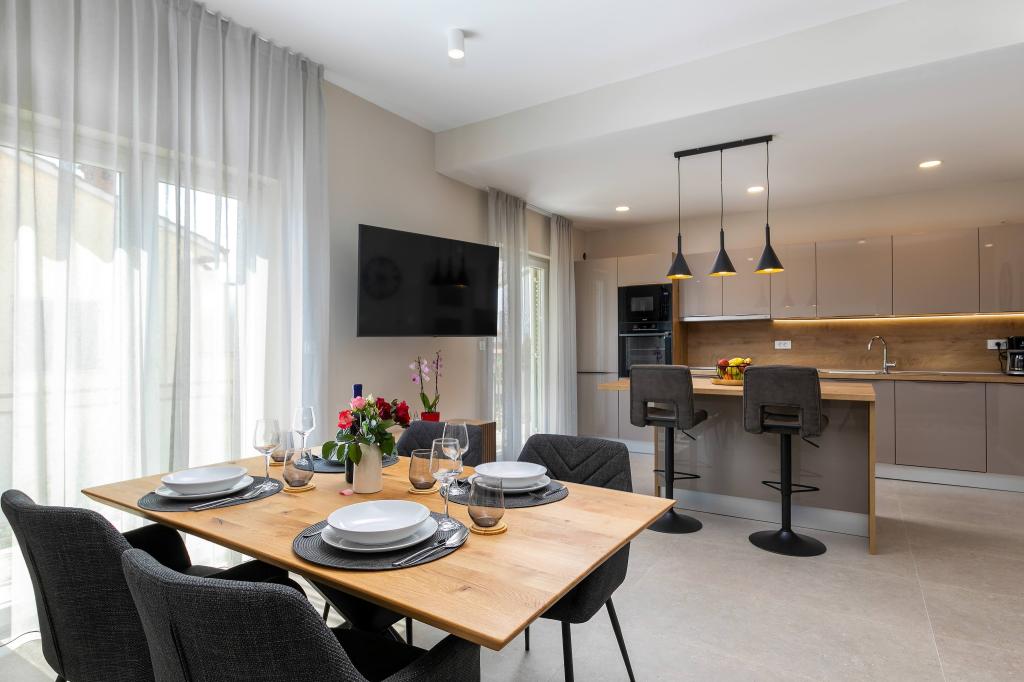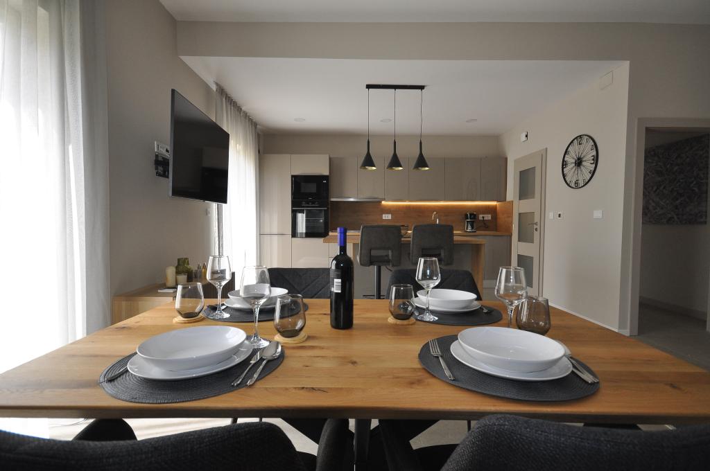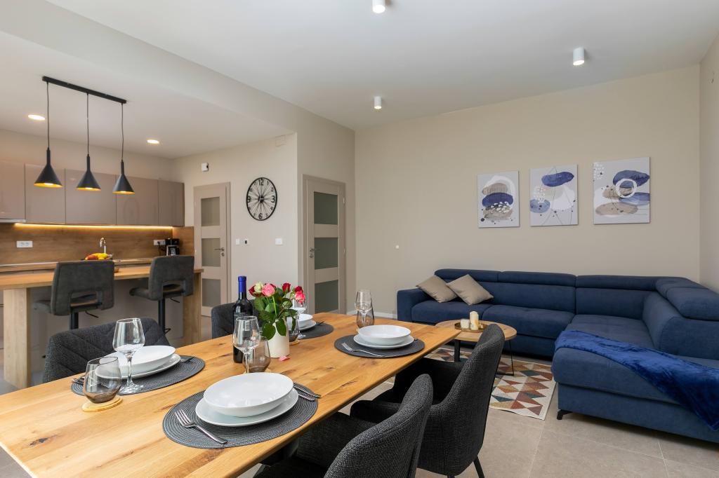 Poreč, Apartma Nona Ana, na novo prenovljen apartma z eno spalnico, kopalnico, prostorno dnevno sobo z jedilnico in kuhinjo ter balkonom. Kuhinja je opremljena s pomivalnim strojem, mikrovalovno pečico, pečico, aparatom za filter kavo in aparatom za espresso kavo, grelnikom vode in opekačem kruha. Apartma ima tudi TV-SAT, Wi-Fi, sušilnik za lase, likalnik za likanje oblačil in pralni stroj v kopalnici. Stanovanje se ogreva in hladi preko inverterske klimatske naprave, ki se nahaja v dnevni sobi in spalnici. Stanovanje se nahaja v 1. nadstropju. Parkirni prostor zagotovljen na dvorišču. Oddaljenost od morja je le 900m-1000m, oddaljenost od tržnice 500m, restavracija 600m, oddaljenost od centra 2500m.
