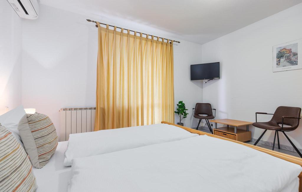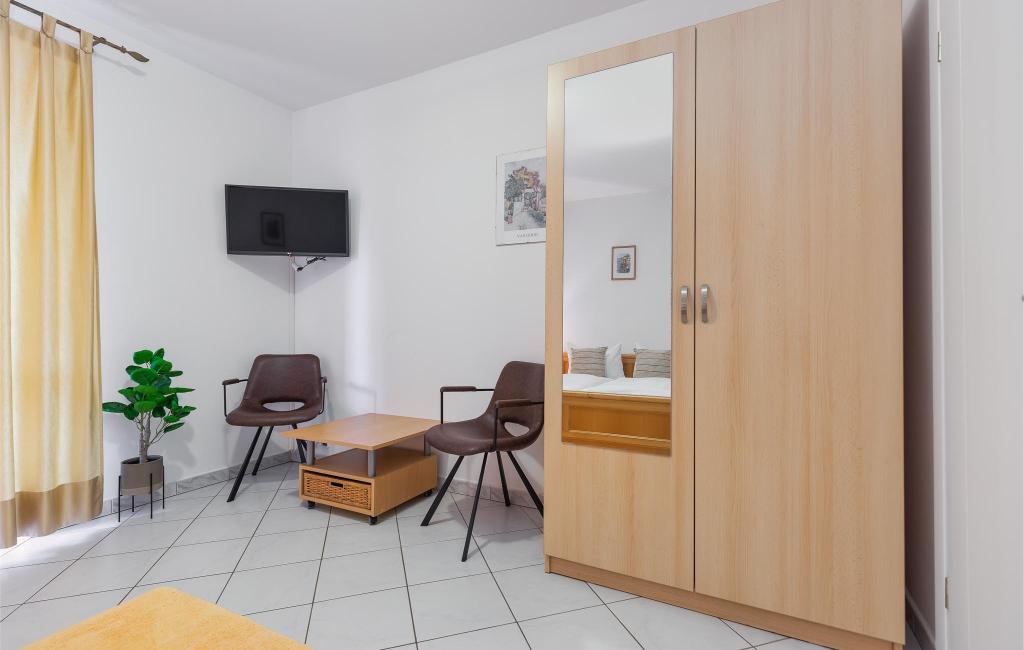 Preberite več Namestitvene enoteDodatni pogoji Polog ob prihodu: 100,00 € Prijava 3 € enkrat na gosta Podnebje: 5 € na dan Čiščenje: Kupec mora pospraviti, preden zapusti stanovanje, ne glede na končno čiščenje. Plačilo na Kuna kunah po ceniku na recepciji.