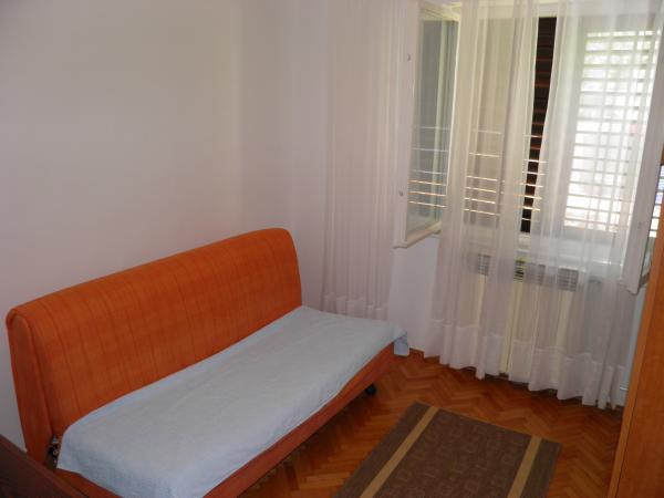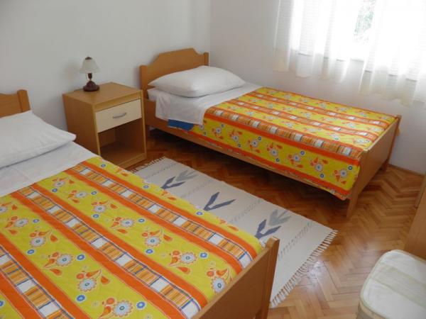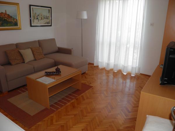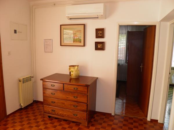 Apartmaji v zasebni hiši v bližini morja in centra. Ena aplikacija. se nahaja v prvem nadstropju in ima 2 spalnici, dnevno sobo z dodatnim ležiščem, kuhinjo, kopalnico in teraso. Še ena aplikacija. se nahaja v pritličju in ima 2 spalnici, kuhinjo, kopalnico in teraso z vrtom. Parkirišče je pred hišo. Ti apartmaji se nahajajo le nekaj korakov od priljubljene plaže Brulo v Poreču, zato so zelo povpraševani. Ne čakajte predolgo, da rezervirate to fantastično namestitev.