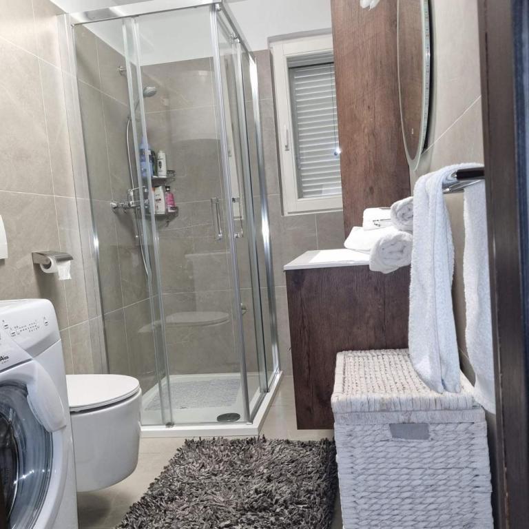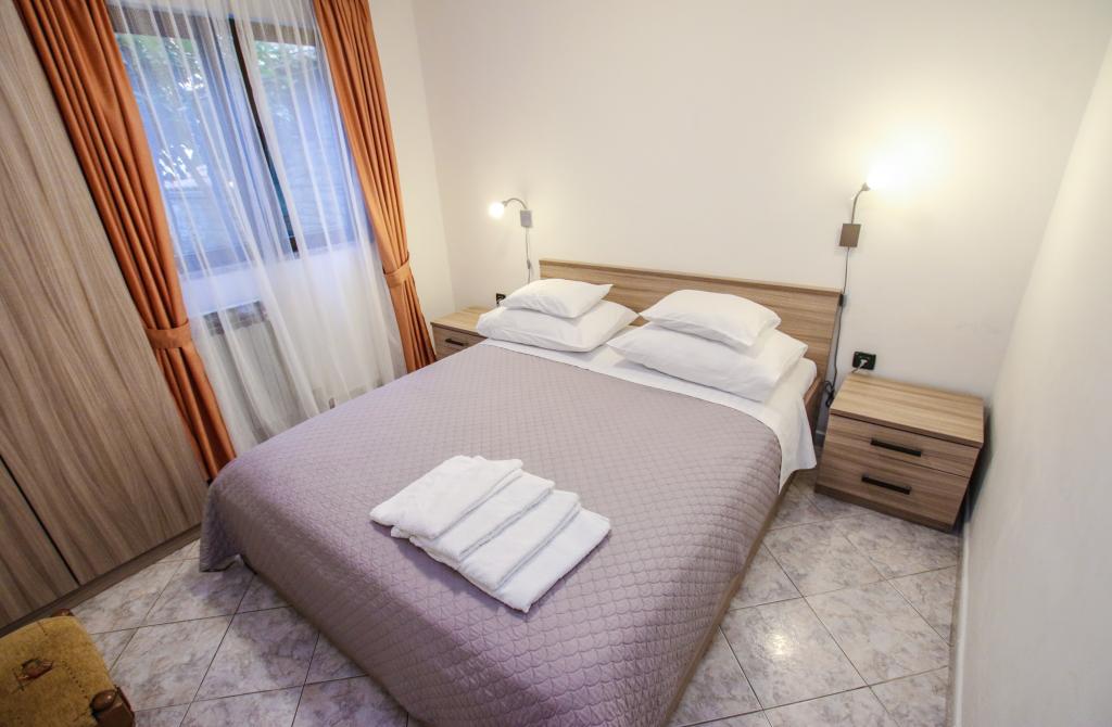 Apartmaji v zasebni hiši v bližini morja in centra. Apartma se nahaja v pritličju in ima 2 spalnici, dnevno sobo z dodatnim ležiščem, kuhinjo, kopalnico in teraso. Ta nastanitev ima idealno lego, saj lahko greste povsod peš, plaža v 2 minutah in center mesta v treh minutah. Trgovina je od apartmaja oddaljena le 50 m. Samo vzemite svojo zobno ščetko, ostalo pa prepustite nam!