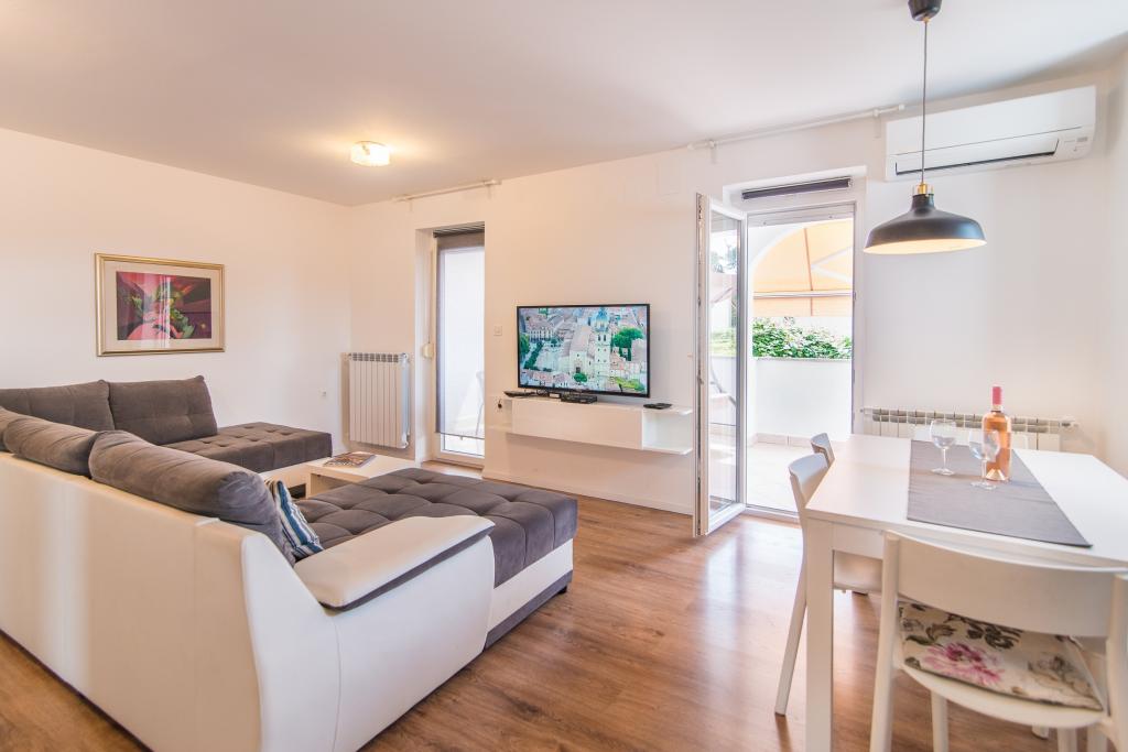 Jaz bi priporočal to stanovanje zaradi svoje velikosti, lokaciji in dostop do sonca v vsakem trenutku. Apartma se nahaja v zgornjem nadstropju, zaradi česar je tam ves čas topel. Ima balkon, na katerem lahko preživite svoj čas, še dolgo v večer. Tudi ob tuš lahko prevzame sončenje, ker veliko okno v strehi nad kabino. Soba je v celoti opremljena. Tiho in mirno območje. Do morja in mesta 5-10 minut hoje do veleblagovnice Lidl ali Konzum 2 minut hoda. Sosedje lepo vljudno, Možnost parkiranja v bližini hiše ali parkiranje v notranjosti. Zelo dostopna cena za takšne razmere. Priporočam počitek pred turistično sezono, ki je enako topel in cenejši. Z veliko željo, da bi šel tja naslednjič.