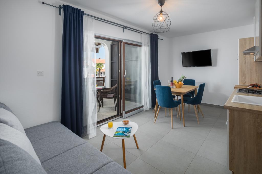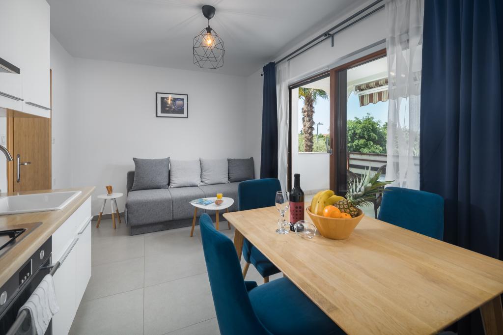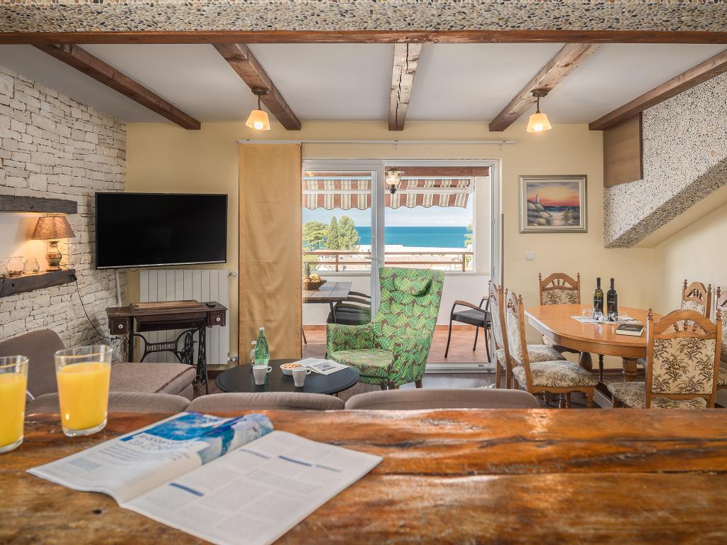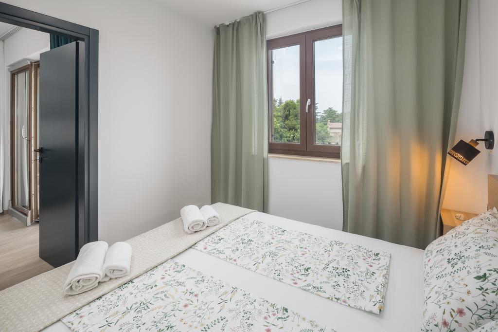 Lep, prostoren in čisti apartma. Ima 3 spalnice in večji dnevni prostor s kuhinjo za druženje. S terase je lep pogled na morje. Lastnik je prijazen in ustrežljiv. Dobra lokacija apartmaja, večji Market Plodine je v neposredni bližini, do centra Poreča pa tudi ni daleč.