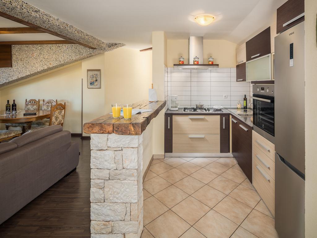 To je bil naš prvi dopust na Hrvaškem in v tujini nasploh. Našli smo res odličen kraj in istega gostitelja, Almirja, ki nas je sprejel z bosanskim pivom in dobrimi nasveti o lokalni gastronomiji, Poreču in krajih, ki jih je treba obiskati v Istri. Na apartma nismo imeli nobenih pripomb, prenovljen, vse novo in nepoškodovano, polna kuhinja, kuhinja, mikrovalovna pečica, lepa velika terasa, klima, velik TV, dober wifi. Almir je bil vedno v pomoč in večkrat sva imela dolge klepete. Vsak dan je spraševal, če je vse v redu, in želel zamenjati naše brisače. Na njegovo priporočilo smo se odpravili v lokalno vinotoč, kjer smo po degustaciji kupili zalogo vina in rakije. Hiša je na ne preveč prometni ulici, 5 minut hoje do plaž. 100 % se bomo vrnili. Hvala!