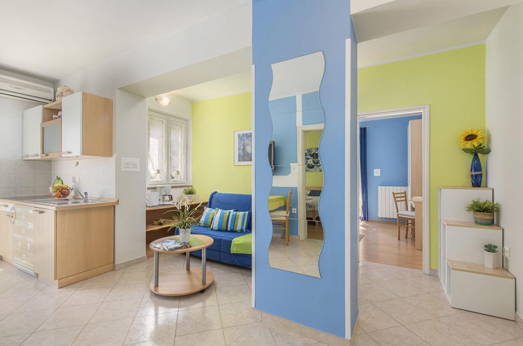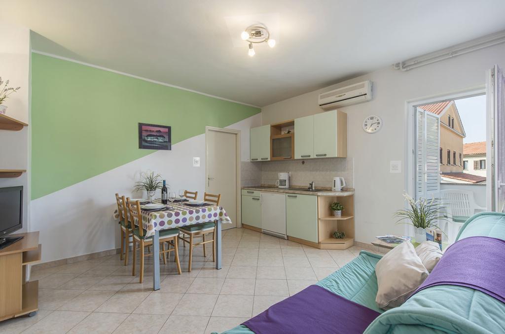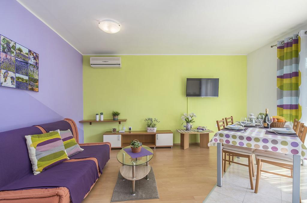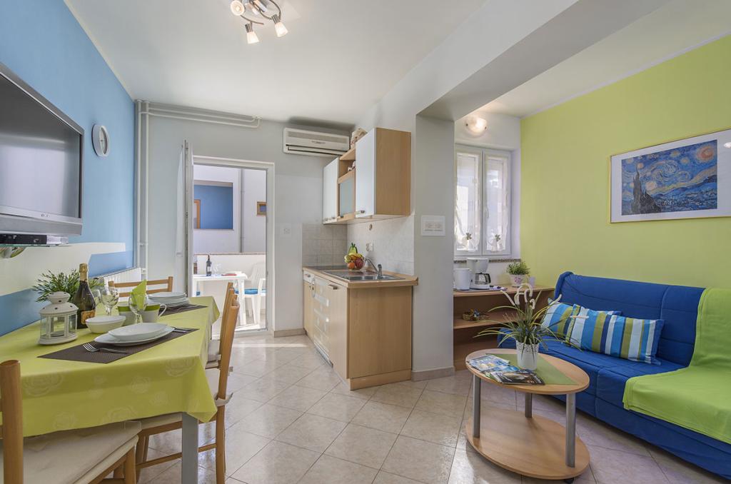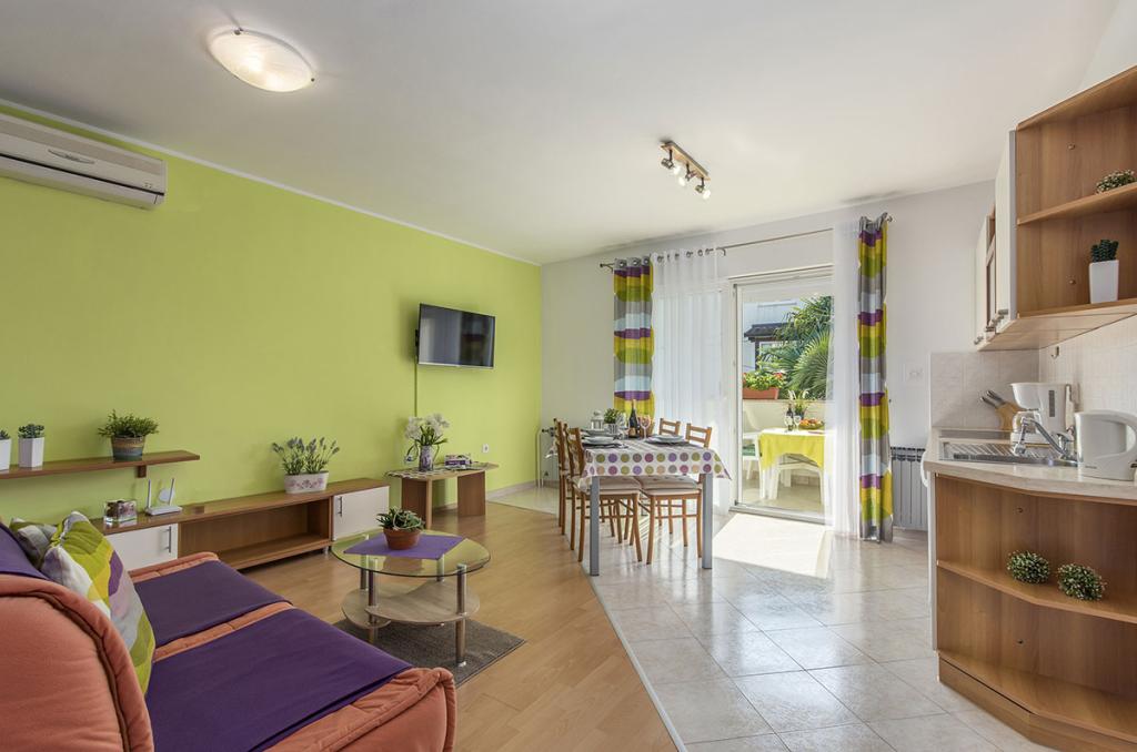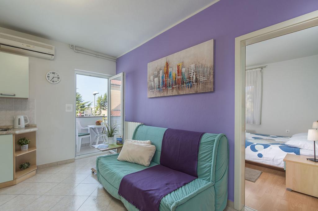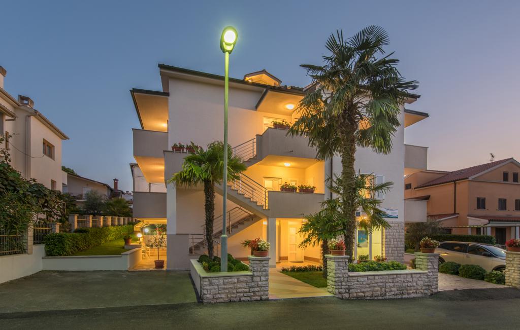 Apartmaji se nahajajo v mirnem delu Poreča, 5 minut hoje od plaže. V krogu 50 m so trgovine, več pekarn, 5-6 restavracij, teniška igrišča in drugi športni objekti. Staro mestno jedro je oddaljeno 15 minut hoje, po promenadi ob morju ali s turističnim vlakcem, ki vozi ves dan.