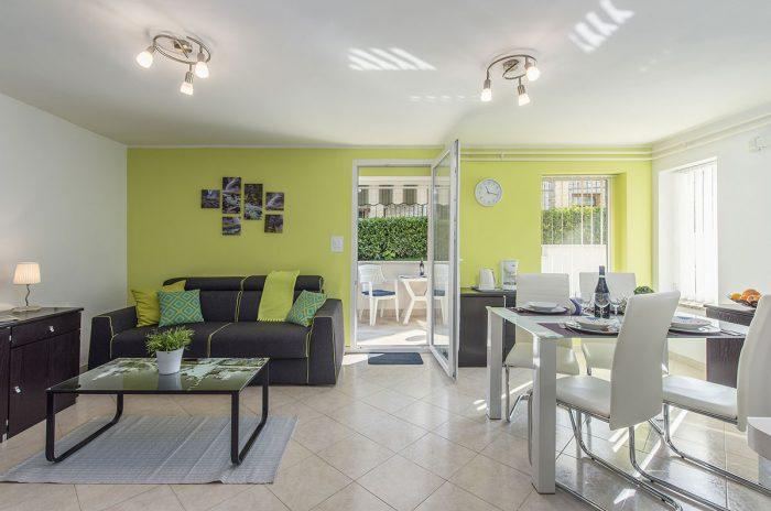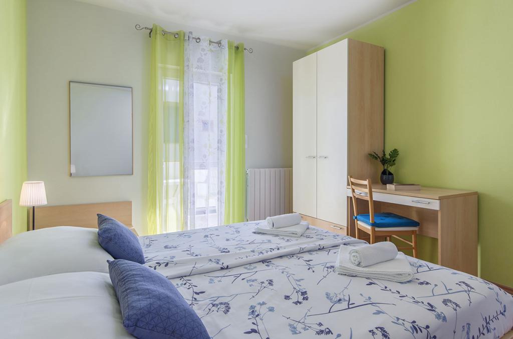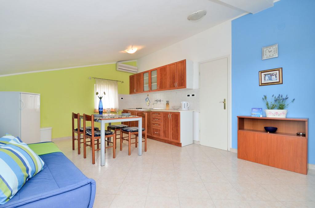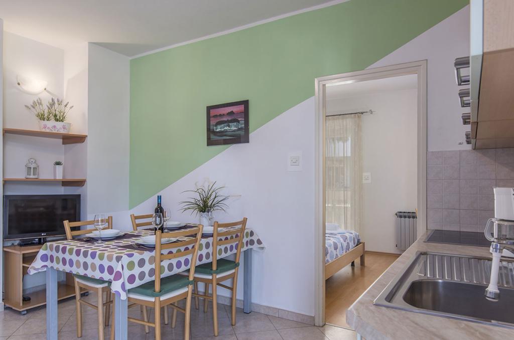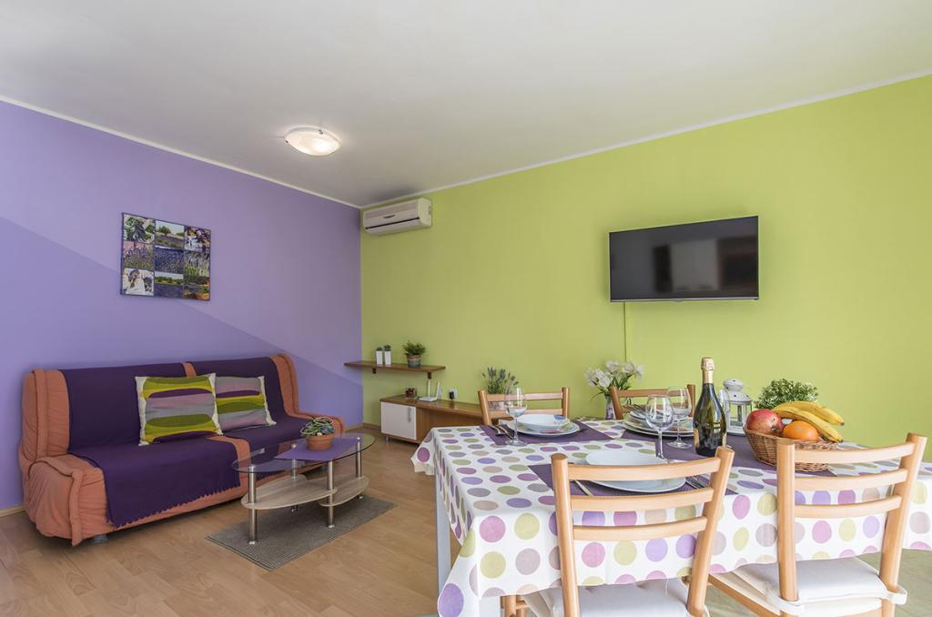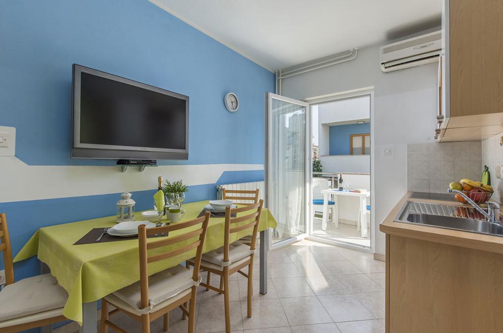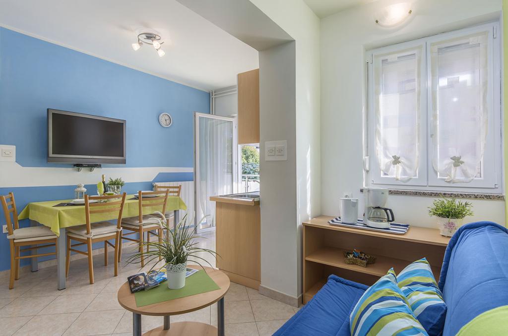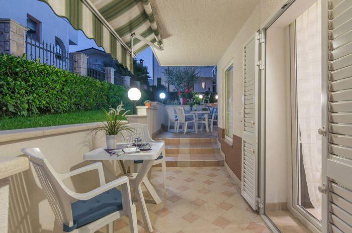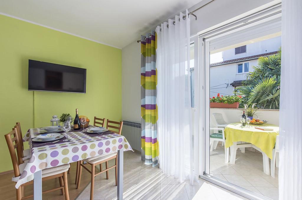 Apartmaji se nahajajo v mirnem delu Poreča, 5 minut hoje od plaže. V krogu 50 m so trgovine, več pekarn, 5-6 restavracij, teniška igrišča in drugi športni objekti. Staro mestno jedro je oddaljeno 15 minut hoje, po promenadi ob morju ali s turističnim vlakcem, ki vozi ves dan.