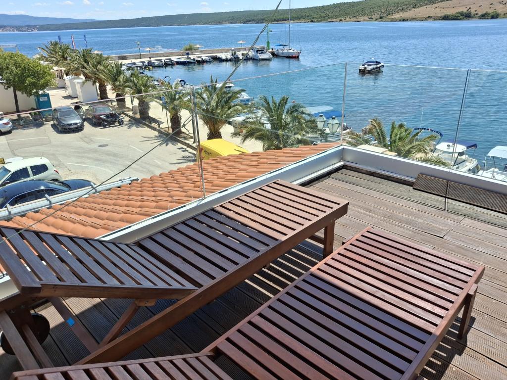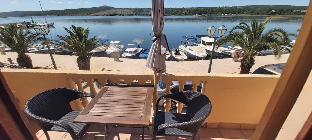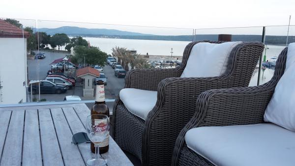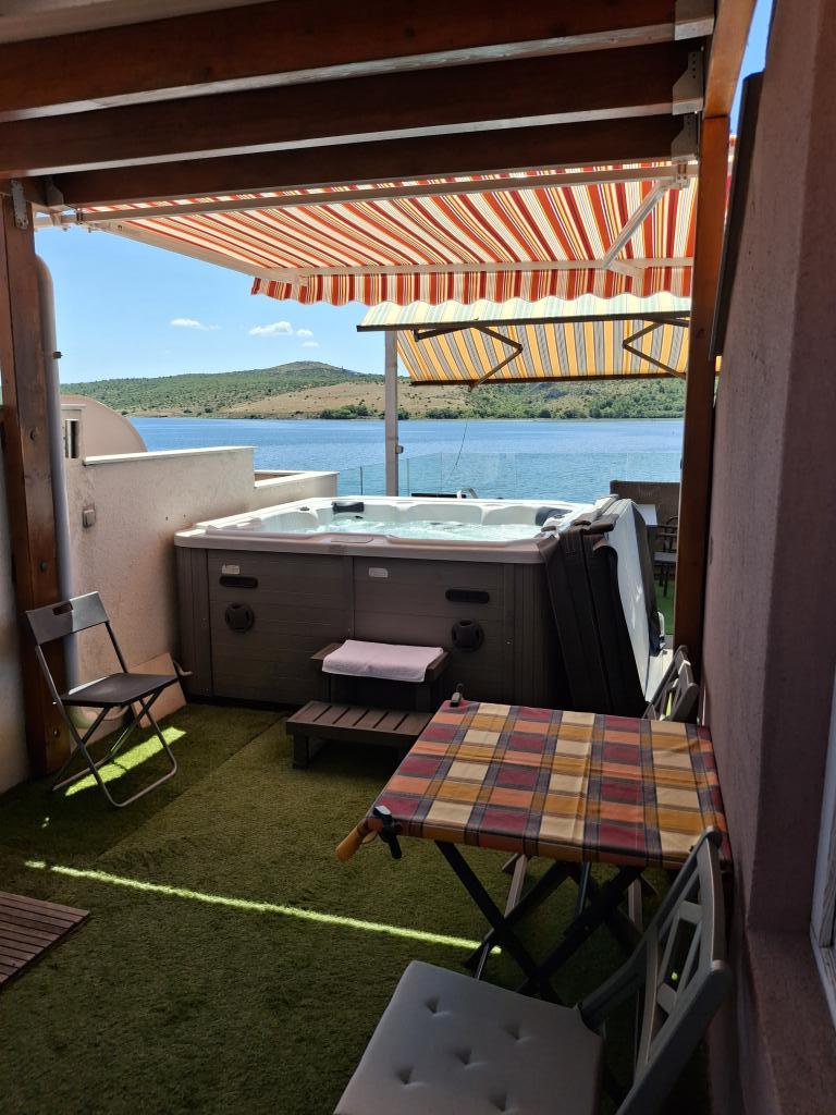 Apartmaji so v prvi vrsti ob morju. Nahajajo se v središču Posedarja s pogledom na pristanišče in lokalno obalo ob plaži. Oddaljenost od prve manjše plaže za kopanje je 50 m. Velika lokalna plaža je oddaljena 150 m. Apartmaji se nahajajo v družinski hiši z ločenim vhodom za apartmaje. Vsi apartmaji imajo balkon ali teraso, opremljeni so s posodo, posteljnino, brisačami. Vsi imajo klimatsko napravo, pametni LCD TV. Apartmaji so namenjeni samo za 2 osebi. Ponujamo 1 standardno opremljen apartma in 1 deluxe apartma s 50 m2 teraso z zasebnim jacuzzijem na vrhu hiše samo za ta apartma, ležalniki, brisačami, tendami za senco na motorjih. En del terase je zaradi dežja in premočnega sonca pokrit s paneli, tako da se terasa lahko uporablja kadar koli v dnevu. Opomba: apartmaji so namenjeni samo 2 odrasli osebi brez možnosti sprejema več oseb. Ne sprejemamo otrok, mlajših od 8 let. Sprejemamo samo enega majhnega, neagresivnega psa do 3 kg, pes pa mora spati na tleh.