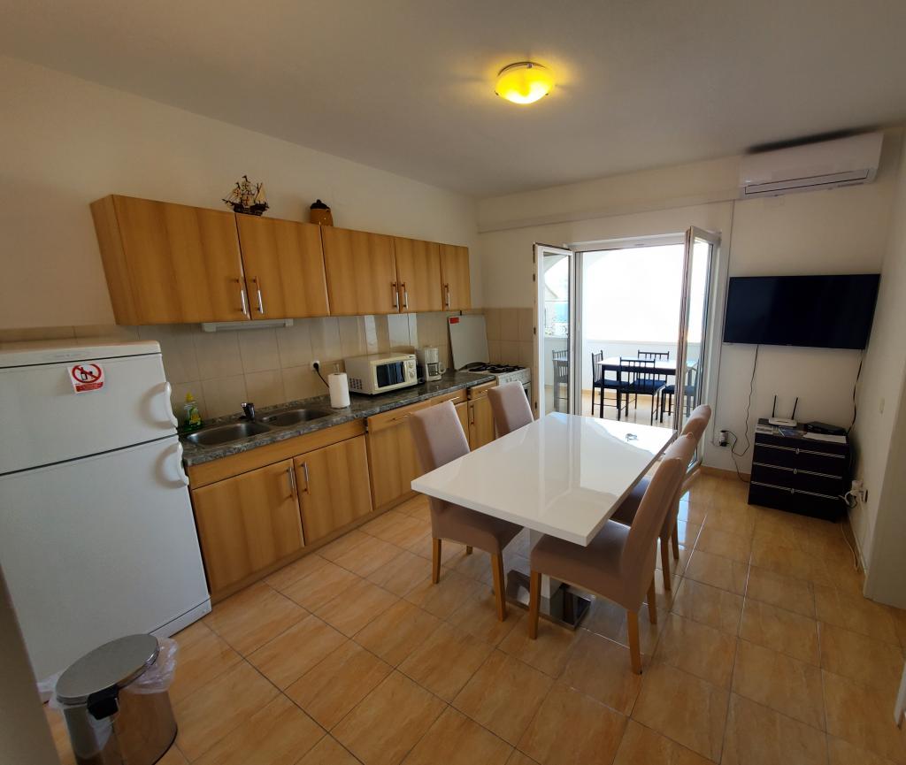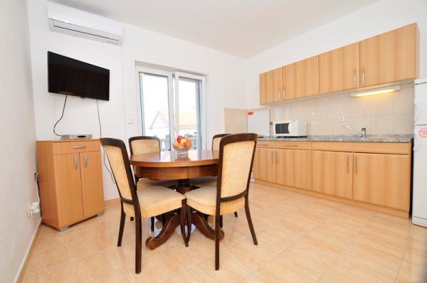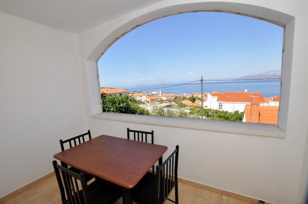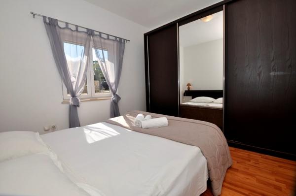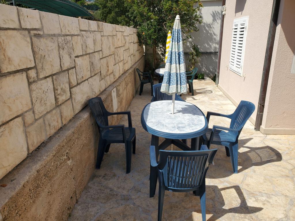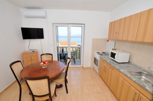 Prostoren dvosobni apartma opremljen za prijeten oddih. Pokrita terasa je idealna za sprostitev in uživanje v čudovitem pogledu na morje, Bracki kanal, Split in okoliške kraje ob obali ali sončni zahod. Lastnik živi v isti stavbi na tleh in je v vsakem trenutku na voljo, da pomaga ali odgovori na vprašanja o plažah, restavracijah, izletih itd.