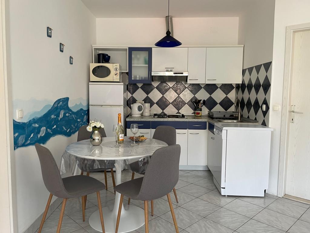 Turistična taksa je vključena v ceno.Vse pohvale lastnikom apartmaja: od urejenosti, dobrodošlice, preko opremljenosti apartmaja in higiene do informacij o aktualnem dogajanju v Postiri. Za naju z otrokom je bilo zelo priročno, saj je plaža dve minuti od apartmaja, vse je kot na fotografijah, vsak detajl v sobah pa je funkcionalno zasnovan. Plaža izpolnjuje različne kriterije: otroci lahko skačejo s pomola v morje, najamejo sup ali pedalin, malo dlje na skalah lahko uživate v miru in tišini, kavarna na plaži pa je nemoteča in ponuja odlično storitev. Lokacija apartmaja je odlična, parkirišče je zelo blizu, vse je udobno in tiho. Do centra vas vodi petnajstminutni sprehod ob morju. Peščena plaža Lovrečina je oddaljena deset minut vožnje, Zlatni rat pa 50 minut. Od trajektnega pristanišča v Supetru je 15-20 minut vožnje skozi senco borovcev. Tudi dobiti ga je enostavno in kot solo mami dveh otrok (12 in 8 let) mi ni bilo nič težko ali komplicirano najti ali se z otroki premikati po otoku. Postira je idealna izbira za miren in aktiven dopust, saj ima ugodno lego na Braču, sam kraj pa je zelo očarljiv in ima čudovito barvo neba v mraku. Otrokom je bilo pomembno, da imajo dobro WiFi povezavo, mi smo jo imeli in skratka naslednje leto bi se radi vrnili in pripeljali prijatelje. Hvala družini Jelinčić za gostoljubje.