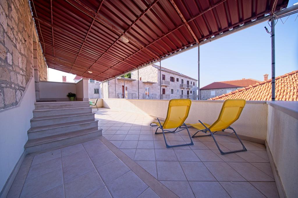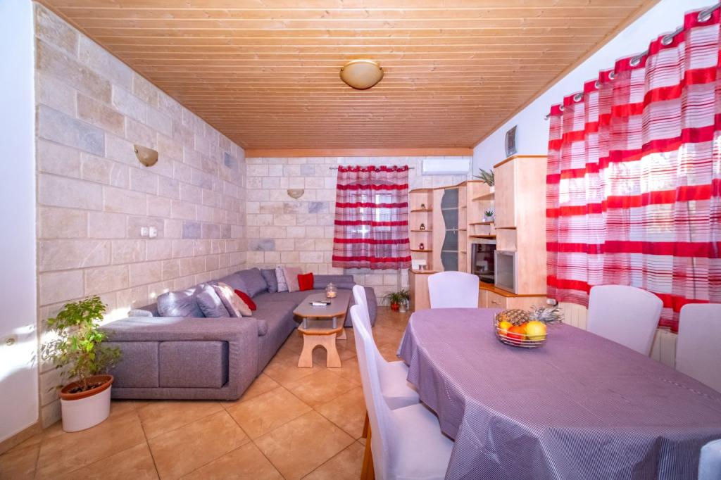 Hiša se nahaja v majhni slikoviti vasici Postira. V bližini so restavracije, trgovine, sprehajalne poti in dva čudovite peščene plaže. Objekt se nahaja v majhni ulici brez prometa in gneče. pritličje stanovanje z dvema spalnicama, ena z zakonsko posteljo in drugi pograd ležišči. Gostje lahko klimatsko napravo, brezplačen internet, pralni stroj, pomivalni stroj in prostorno pokrito teraso. V prvem nadstropju je stanovanje s tremi spalnicami, ki lahko sprejme max 4 osebe. Opremljen je s klimatsko napravo, brezplačen internet, pralni in pomivalni stroj. Prav tako ima dva balkona in veliko pokrito teraso s pogledom na morje. Pred hišo je parkirišče z dve parkirni mesti.