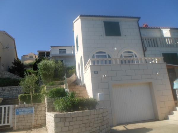 Prva hiša na morju, mirno območje Postira, se Objekt se nahaja 10-15 minut od centra, in 3 min od plaže. Idealno mesto za majhne otroke: slepo ulico, ni veliko prometa avtomobilov. Hiša ima dve taki enoti: eno stanovanje z imenom Marija, druga se imenuje Laura. Dovolj so podobni, vsak apartma ima poseben vhod. Udobje: V devetem mesecu cena je 40 € ali po dogovoru.