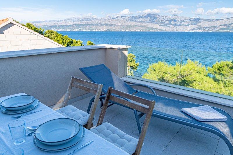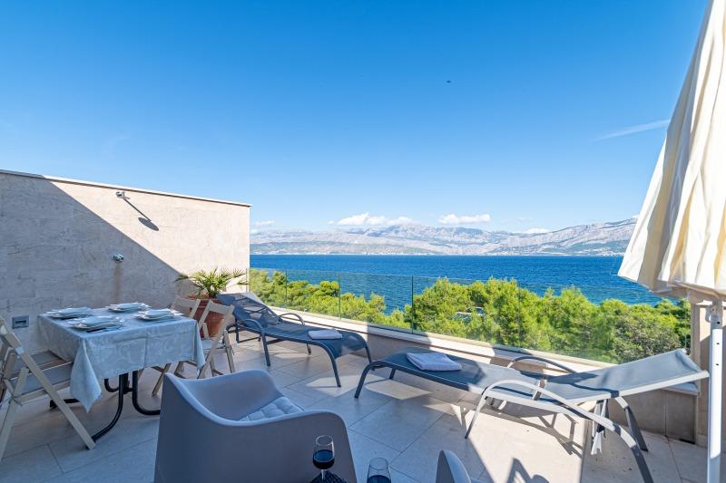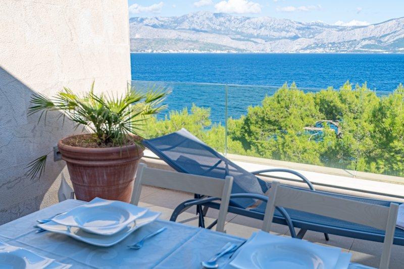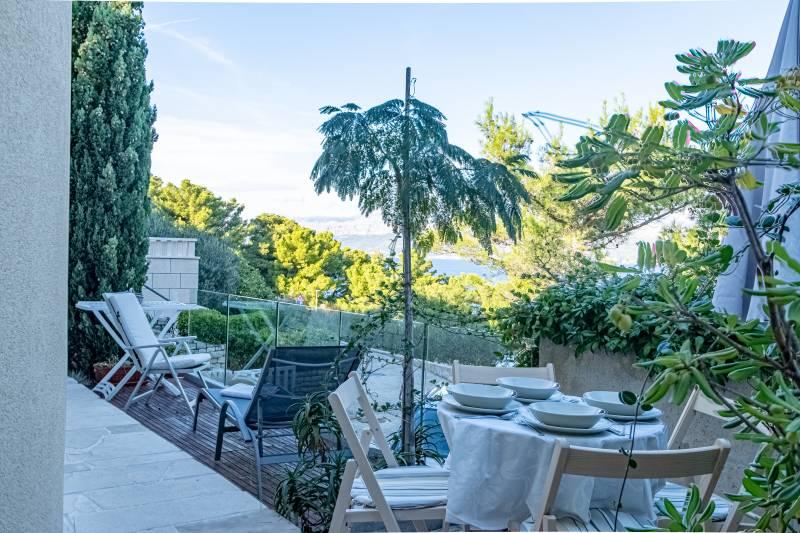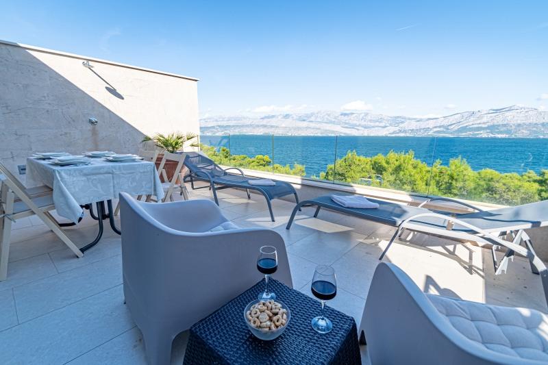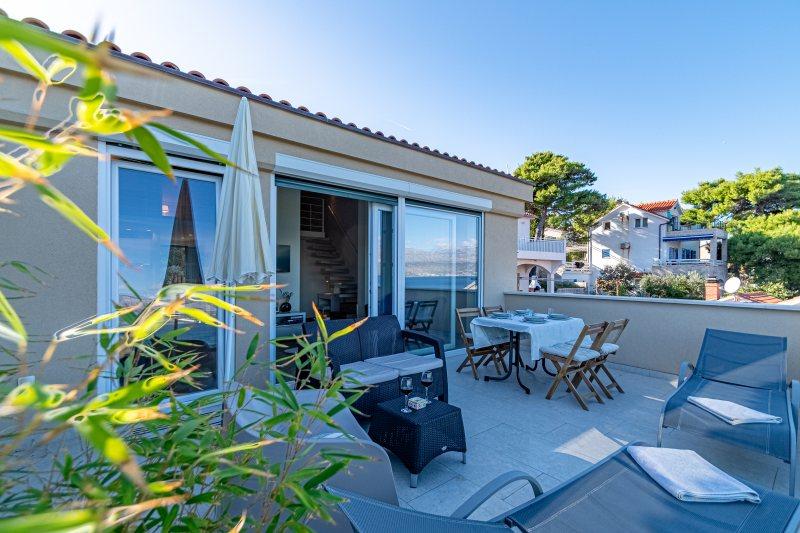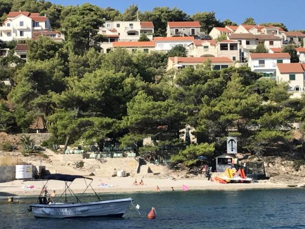 Turistična taksa je vključena v ceno.Vila Inga se nahaja v zalivu Mala Lozna. V neposredni bližini apartmaja se nahaja caffe bar, ki se nahaja na skali, ki se zelo lepo zliva z naravnim okoljem in katere terase se raztezajo vse do prodnate plaže, primerne za vso družino, kjer je možnost najema ležalnikov, senčnikov in tuša. Nekaj korakov stran se začne skalnata obala, ob kateri lahko uživate v morju in plavanju v veliko bolj intimnem okolju. Pred vilo je cesta skozi borov gozd in ob morju, ki vodi do zaliva Lovrečina - idealnega za kolesarjenje, sprehode, tek itd. 100 metrov stran je dobro založen supermarket z odlično ponudbo hrane, pijače in gospodinjskih izdelkov. Do središča Postire se lahko pripeljete v približno 20 minutah z lahkotnim sprehodom ob morski obali.