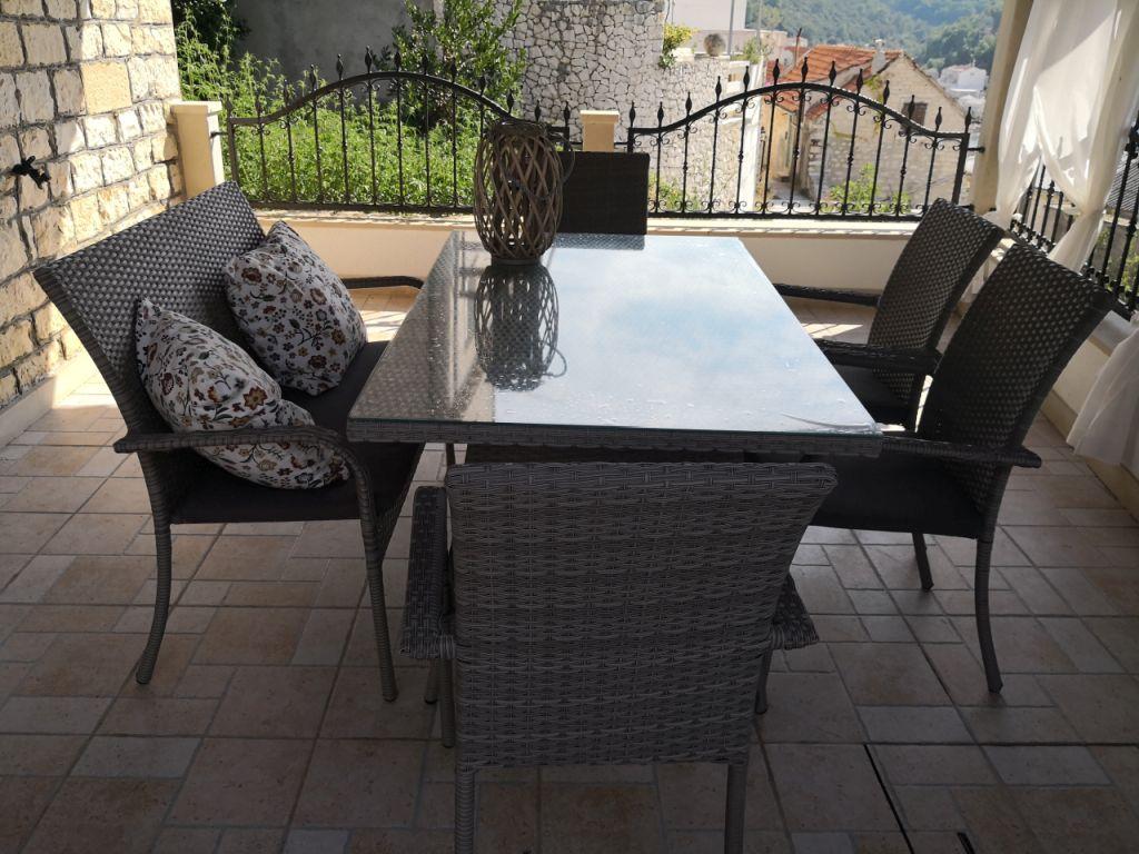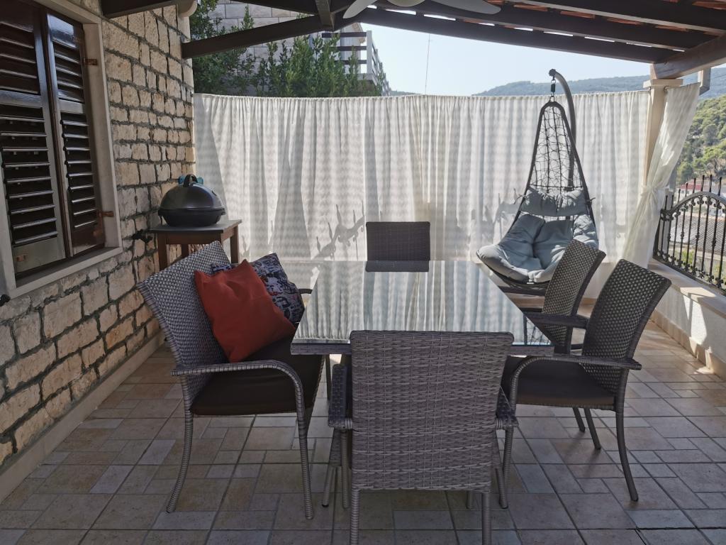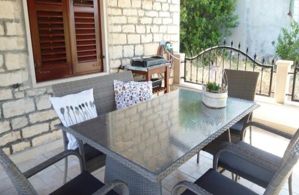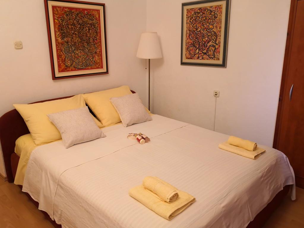 Hiša Bjedov s čudovitim pogledom na morje z lastne pokrite terase ponuja dve dvoposteljni sobi, kuhinjo z dnevno sobo in dodatno ležišče za dve osebi. Popolnoma opremljena kuhinja ima mizo in stole, posodo, jedilni pribor itd., indukcijski štedilnik z vgradno pečico, hladilnik z zamrzovalnikom, mikrovalovno pečico, aparat za kavo, kuhalnik vode, toaster, pomivalni stroj, likalnik, klimatsko napravo v dnevni sobi in spalnica št.1, android TV, radio, internet (WLAN) brezplačna uporaba. Hiša ima kopalnico s tuš kabino in WC ter ločen WC s pralnim strojem. Posteljnina se menja tedensko, ena velika in ena manjša brisača/na osebo na teden. Cena vključuje turistično takso.