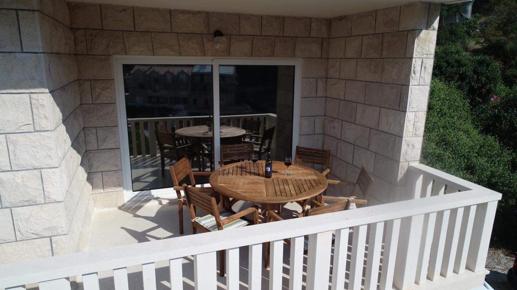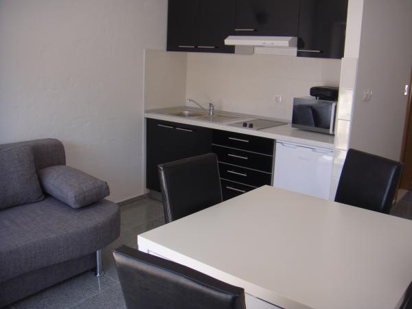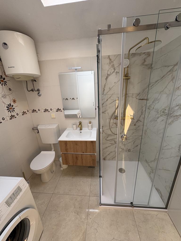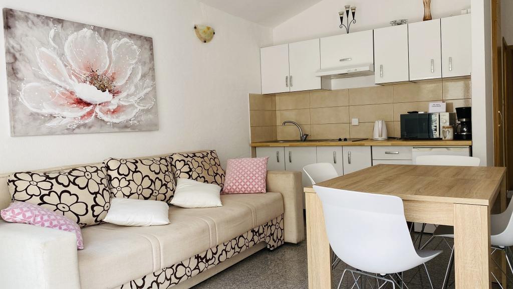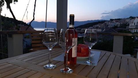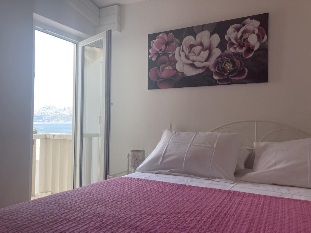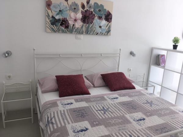 Apartma 6 za 2 osebi z lepim pogledom na morje, sončno in zelo prostoren tri spalnice z zakonsko posteljo, dnevna soba z zakonsko posteljo, dve kopalnici, masažno prho, dve klimatske naprave, indukcijski štedilnik, pomivalni stroj, pralni stroj , kavni avtomat, kuhalnik vode, mikrovalovna pečica in hladilnik. Terasa s kaminom, žar in teraso s pogledom na morje, ki imajo ločene mize in stoli. TV v dnevni sobi, in je na voljo brezžični dostop do interneta. To je opremljen s posodo za pripravo in serviranje hrane in pijače ter pribor v primernih količinah. To se nahaja v prvem nadstropju hiše v središču mesta. To se nahaja v bližini trgovine morja (40 m) (50 m), številne plaže, restavracije, bari in drugih gostinskih obratih. V ceno je vključeno parkirno mesto pred hišo, uporaba privez, posteljnino in brisače, čiščenje po odhodu in uporabo posteljo otroško če je to potrebno