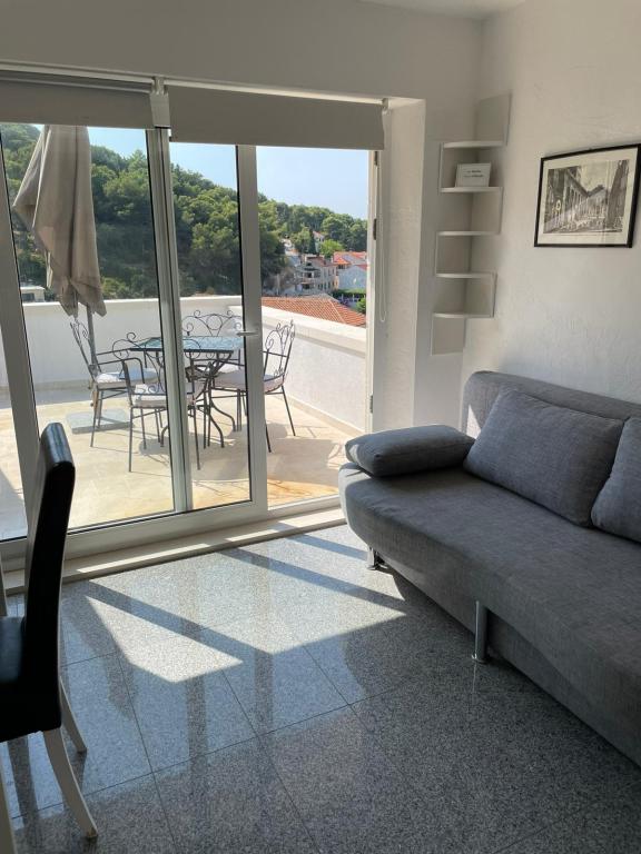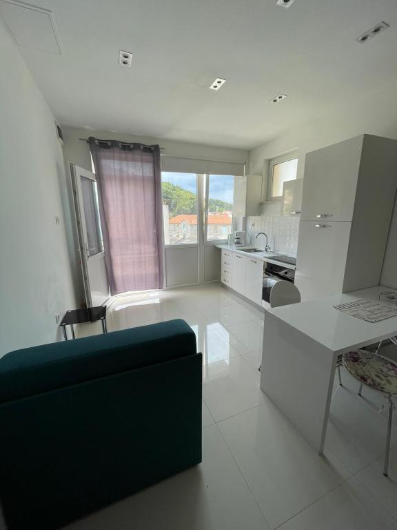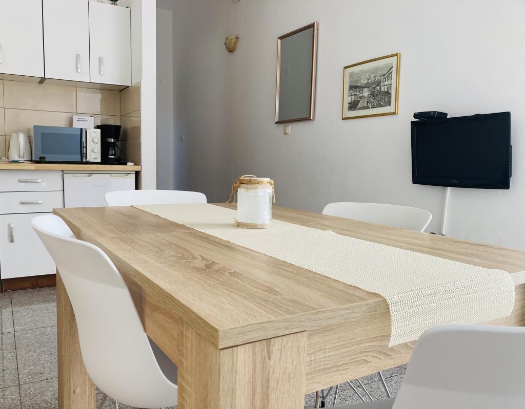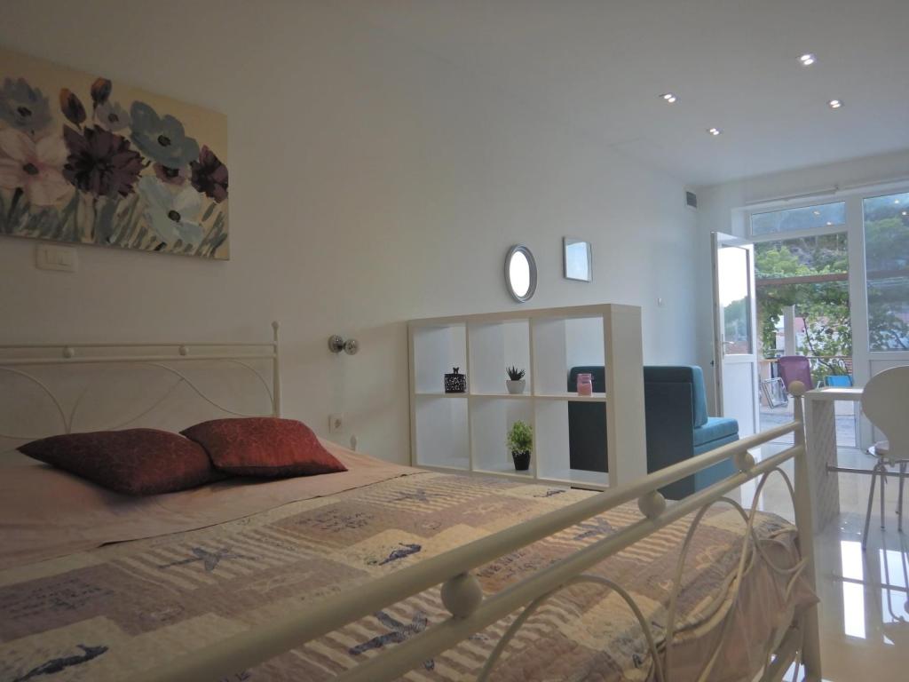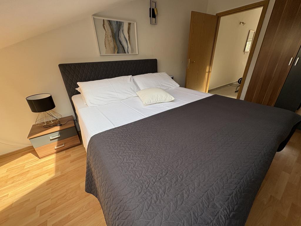 Apartma 6 za 2 osebi z lepim pogledom na morje, sončno in zelo prostoren tri spalnice z zakonsko posteljo, dnevna soba z zakonsko posteljo, dve kopalnici, masažno prho, dve klimatske naprave, indukcijski štedilnik, pomivalni stroj, pralni stroj , kavni avtomat, kuhalnik vode, mikrovalovna pečica in hladilnik. Terasa s kaminom, žar in teraso s pogledom na morje, ki imajo ločene mize in stoli. TV v dnevni sobi, in je na voljo brezžični dostop do interneta. To je opremljen s posodo za pripravo in serviranje hrane in pijače ter pribor v primernih količinah. To se nahaja v prvem nadstropju hiše v središču mesta. To se nahaja v bližini trgovine morja (40 m) (50 m), številne plaže, restavracije, bari in drugih gostinskih obratih. V ceno je vključeno parkirno mesto pred hišo, uporaba privez, posteljnino in brisače, čiščenje po odhodu in uporabo posteljo otroško če je to potrebno