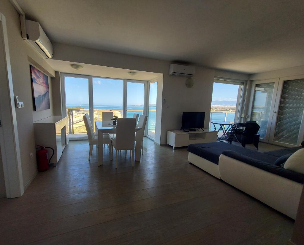 Sodobni dvosobni ali trisobni apartmaji v Povljani z razgledom na morje in skupnim bazenom so idealen kraj za družinske počitnice. Apartmaji imajo dve kopalnici, popolnoma opremljeno kuhinjo, prostorno dnevno sobo in velik balkon/teraso s čudovitim razgledom na morje in otoke. Apartmaji vključujejo brezplačen brezžični internet, klimatsko napravo v vsaki sobi in vse, kar potrebujete za udobno bivanje, kot doma. Apartmaji se nahajajo v bližini plaže (130 m), v kompleksu pa je bazen in prostor za sončenje. Vsi gostje imajo zasebno parkirišče pred apartmaji. Odlična lokacija in mirna osamljenost naredita to namestitev pravo izbiro za sprostitev in uživanje v dalmatinskem soncu.
