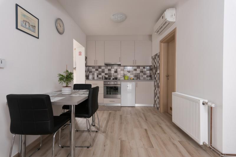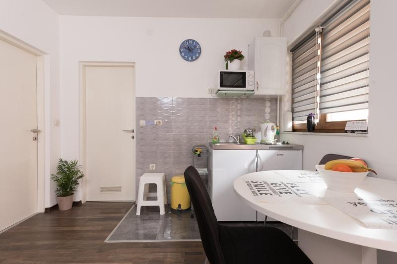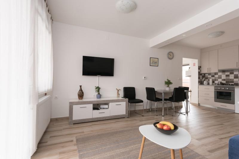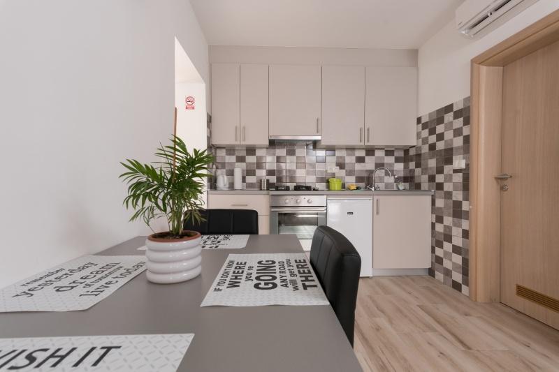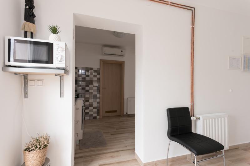 Na mirni lokaciji, le 150/250 m od centra mesta, se nahajajo 4 bivalne enote s po 4 ležišči. Apartmaji so klimatizirani s parkiriščem, pokritimi terasami in opremljeno kuhinjo (hladilnik, štedilnik, mikrovalovna pečica, zunanji žar...) - idealni za samske, pare ali družine in skupine, za krajši ali daljši čas.