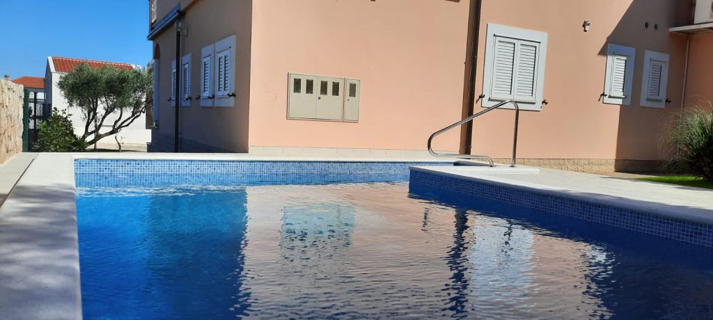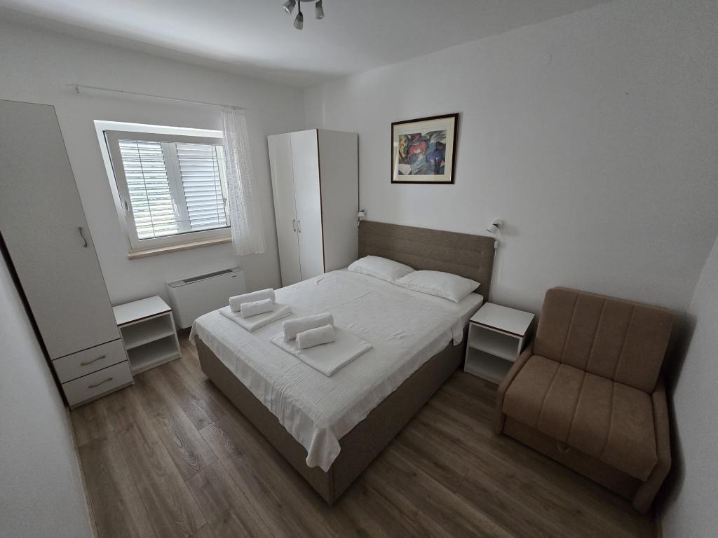 Apartmaji so bili zgrajeni leta 2004 in so moderno urejeni. Nudimo dva štiriposteljna apartmaja. Vsak apartma je opremljen s klimatsko napravo, telefonom, TV, satelitskim sprejemnikom, radiem s CD-jem, sušilcem za lase, aparatom za kavo (nespresso) in sefom (trezor) za vaše osebne vrednosti in dragocenosti. Vsak apartma ima svojo teraso z vrtno garnituro in senčnikom, vsak apartma pa ima tudi parkirno mesto. V celotnem objektu je gostom na voljo brezplačen brezžični internet. V dvoriščnem delu objekta je možnost uporabe žara in vrtne ute, bazena, gostje pa lahko uporabljajo tudi kolesa. Zaradi velikega in urejenega vrta so apartmaji še posebej primerni za družine z otroki.