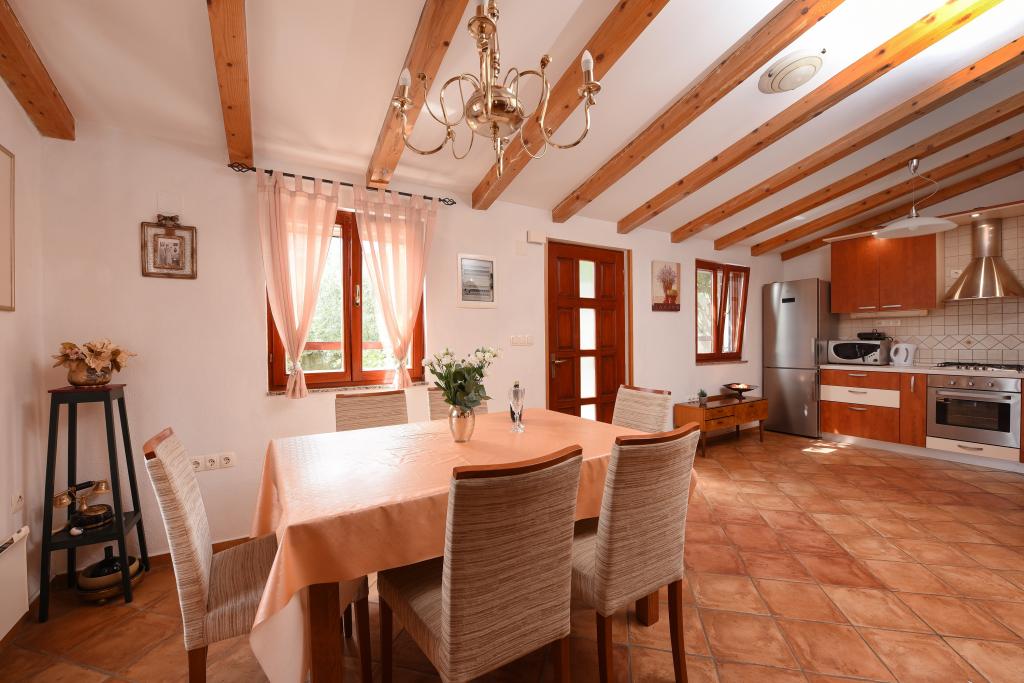 Hiša se nahaja v bližini centra, kjer so trgovine, kavarne, plaže in restavracije in je dovolj oddaljena za počitek in sprostitev. Hiša je v celoti opremljena, ima 2 spalnici, eno v pritličju in drugo na galeriji. Ima prostorno dnevno sobo, kuhinjo s pomivalnim strojem, kopalnico s pralnim strojem, klimatsko napravo, SAT TV in Wi-Fi. Dvorišče sestavljajo parkirišče, hiša z žarom in pokrita terasa.