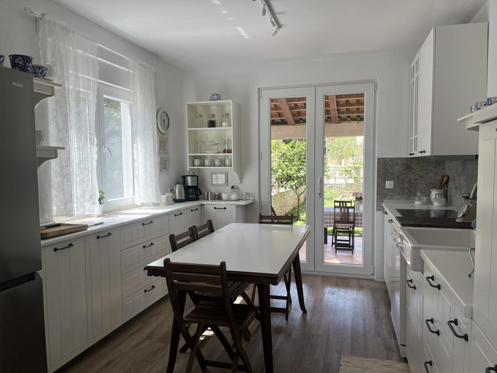 Še enkrat bi radi pozdravili naše čudovite gostitelje in se vam zahvalili za odlično postrežbo! Kot tričlanska družina smo to stanovanje izbrali predvsem zaradi udobja in odlične lokacije. Stanovanje je na novo prenovljeno in res prostorno ter lepo, z dvema spalnicama, vsaka s svojo kopalnico z WC-jem, veliko dnevno sobo, dvema klimatskima napravama v stavbi, kar je dodaten plus, najlepšo kuhinjo, ki je imela vse, kar potrebujete glede posode in aparatov, in iz katere se izhodi na teraso z žarom, čudovit vrt in dvorišče. Ob vhodu je še ena prostorna pokrita terasa, parkirišče za avto pa je pokrito in avto je bil v senci, kar je velik plus glede na to, da smo vsak dan obiskali najlepše plaže na polotoku, ravno po našem okusu, kristalno čisto morje, gozd, čudovita narava!! Kolo bi nam prišlo prav, trgovine, pekarna, kavarne in središče tega majhnega mesta pa so oddaljeni približno 10 minut hoje. Žal je bil naš dopust prekratek in če bi spet prišli v Istro, bi se zagotovo vrnili sem!! Vse pohvale gostitelju in nastanitvi, lepo je videti, da je bilo vloženega veliko truda in podrobnosti, vse ostalo je le bonus! Lep pozdrav