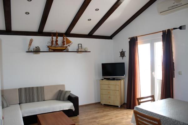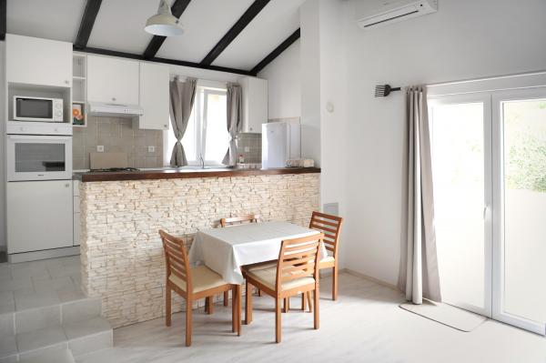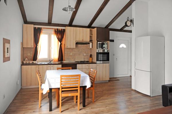 Apartmajska hiša se nahaja 150 m od glavnega pristanišča - pristanišča Krijal. Apartmaji merijo približno 40 kvadratnih metrov in so sestavljeni iz ene spalnice z zakonsko posteljo, kopalnice s tušem ter prostorne dnevne sobe in kuhinje. Udoben raztegljiv kavč lahko služi kot dodatno ležišče za dve osebi. Opremljeni so s satelitsko televizijo, wi-fi in klimatsko napravo. Izžarevajo rustikalen slog in so polni zanimivih in izvirnih detajlov, kar jim daje posebno toplino in čar. Zaradi različnih tonov dekoracije v apartmajih in lažje navigacije pri rezervaciji so apartmaji razdeljeni na rjavo - čokoladno in belo - vanilijevo. :-)