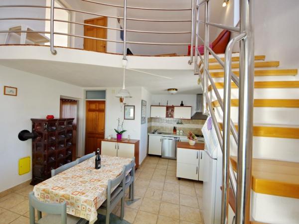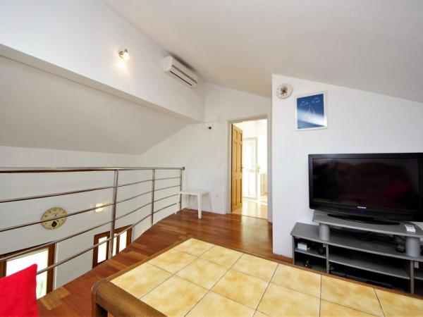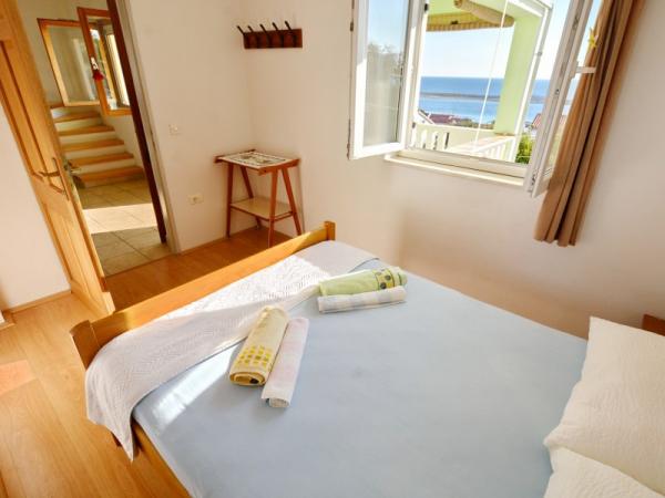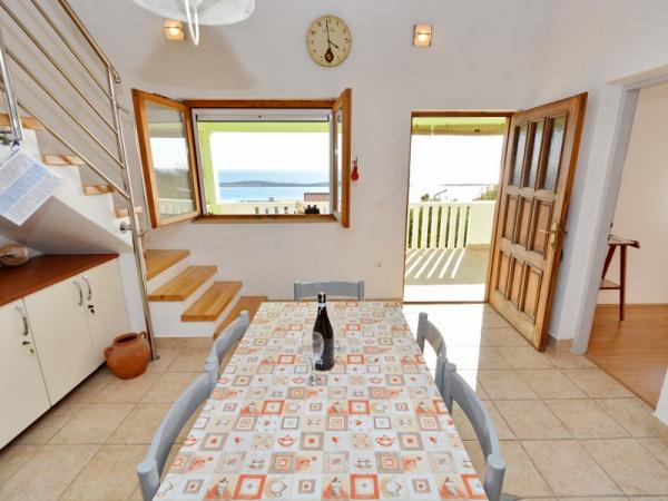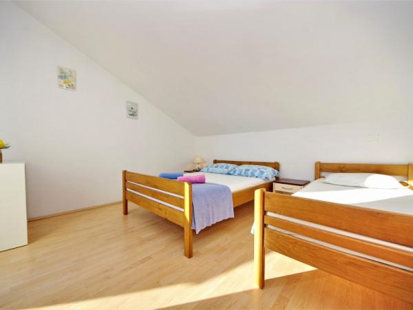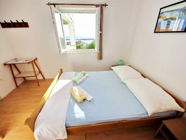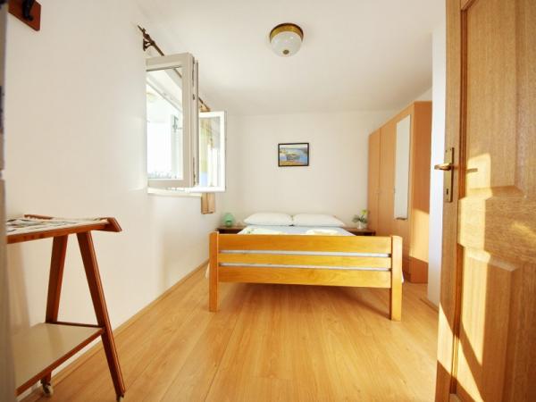 Družinska počitniška hiša se nahaja na mirni in povišani lokaciji na zahodni strani otoka. S prostorne terase lahko uživate v pogledu na odprto morje in bližnje otoke ter na edinstven sončni zahod. Trgovina, trajektno pristanišče, restavracija in plaža so le nekaj minut hoje od hiše, medtem ko je središče otoka na vrhu hriba in je 5-6 minut stran.