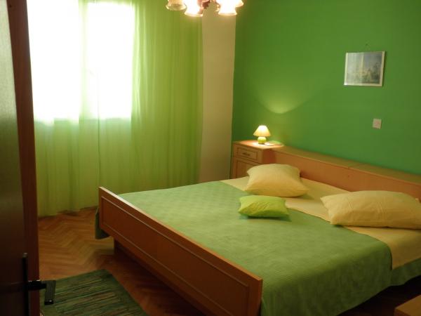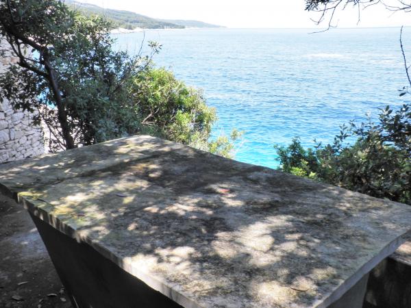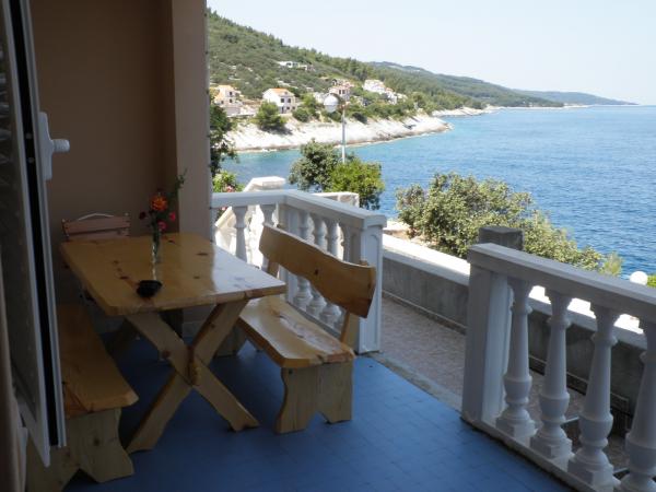 Ti udobni in prostorni apartmaji se nahajajo v mirnem zalivu Prigradica, na otoku Korčula. Nahajajo se v prvi vrsti do morja in imajo lastno plažo (10 m), posebno mesto v senci s kamnito mizo in klopi, kjer lahko skrivajo tiste, ki dolgo ostanejo na soncu. Do središča sejmišča je 3 min hoje, do prodnate plaže, športnega igrišča in restavracij pa je 7 minut hoje. Apartma v prvem nadstropju ima 3 spalnice z zakonsko posteljo (2. nadstropje 2), kuhinjo in dnevno sobo, kopalnico, teraso in zunanji kamin. Dve spalnici imajo pogled na morje in na otok Hvar. Obstajajo 2 brisače in posteljnina na voljo, ki se spreminjajo enkrat na teden. Na terasah, od katerih sončni zahod ponuja čudovit pogled na sončni zahod, je leseno vrtno pohištvo. Apartma je opremljen s klimo, TV, satelitsko posodo, hladilnikom in zamrzovalnikom, plinskim in električnim štedilnikom, pečico, mikrovalovno pečico, aparatom za kavo, toasterjem, likalnikom, sušilcem za lase, pralnim strojem,