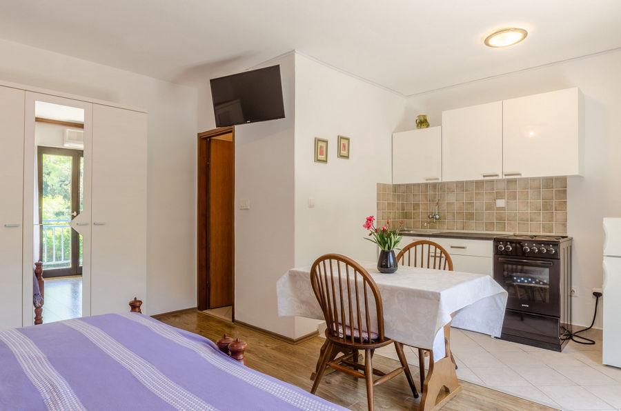 Apartmaji Kuzma se nahajajo v majhnem slikovitem zalivu na otoku Korčula, v bližini Blata. Hiša se nahaja v čudovitem borovem gozdu, malo stran od glavne ceste, tako da lahko gostje uživajo v miru in tišini. Borov gozd pripomore k odlični mikroklimi, ki zagotavlja prijetno bivanje v stavbi in na terasah stavbe. Vsak apartma ima klimatsko napravo. Ob stavbi je velika terasa z žarom in pohištvom, ki ga lahko gostje brezplačno uporabljajo za druženje. Gostom je na voljo brezplačno parkirišče. Od središča zaliva, kjer so trgovina, dve restavraciji, majhna kavarna, je oddaljeno približno 200 metrov, igrišče za odbojko na mivki in igrišče za košarko. V bližini je na razdalji 4 km večji kraj Blato, kjer so supermarketi, zdravnik, banka, pošta. Objekt vas bo sprejel z gostitelji, ki vam bodo na voljo ves čas vašega bivanja.
