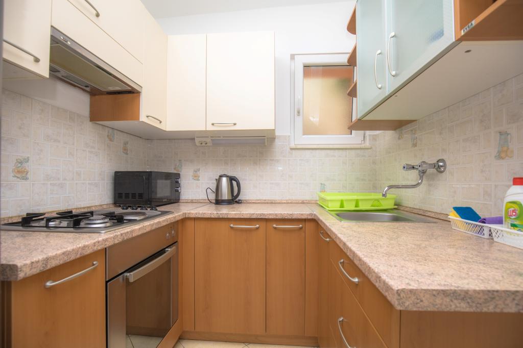 V apartmaju A4 smo bivali 2 tedna (2 odrasla + 3 otroci) in ga lahko samo priporočam. Je zelo čist, ima 2 udobni spalnici, popolnoma opremljeno kuhinjo, dnevno sobo s kavčem in TV ter balkon, kjer lahko uživate v kavi in pogledu na morje. Nahaja se v mirni soseski, plaža (z barom) je oddaljena 2 metra, številne druge plaže pa so v hoje oddaljene. V približno 5 minutah vožnje je nekaj tržnic. Gostitelji so zelo prijazni, vedno ustrežljivi in pridelujejo prvovrstno oljčno olje.