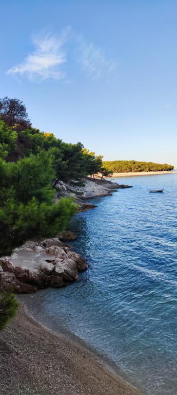 Apartma se nahaja le 2 minuti od morja s prodnato plažo in kavarno, sprehajališče do centra ob morju. Nahajamo se v mirnem okolju. Hiša ima garažo in dvorišče s parkiriščem.