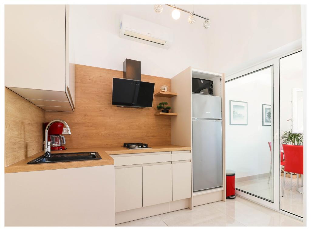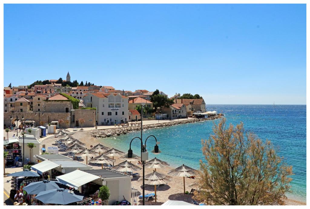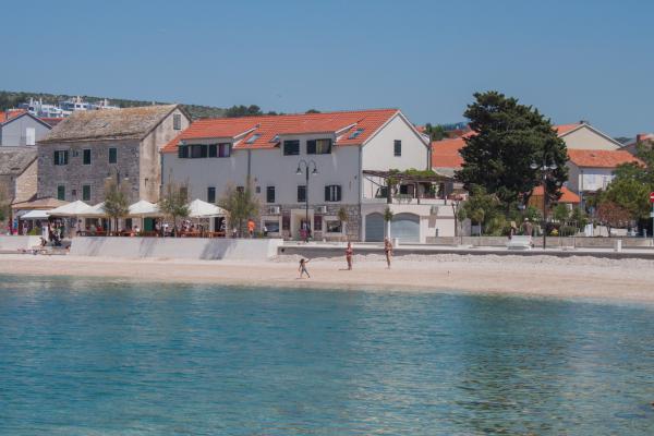Sodobni apartmaji v centru Primoštena, tik ob glavni plaži. S pogledom na morje, plažo in sončni zahod.