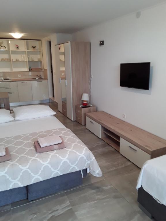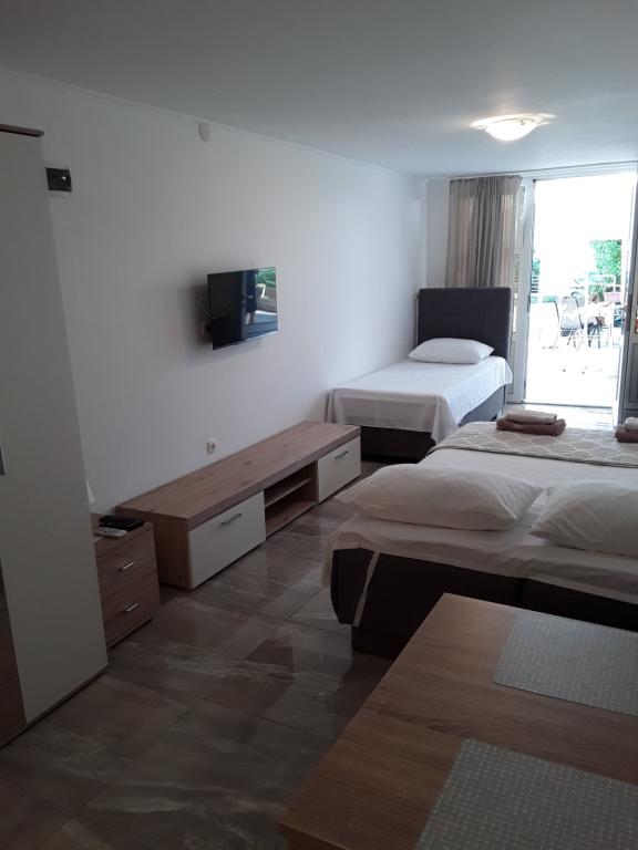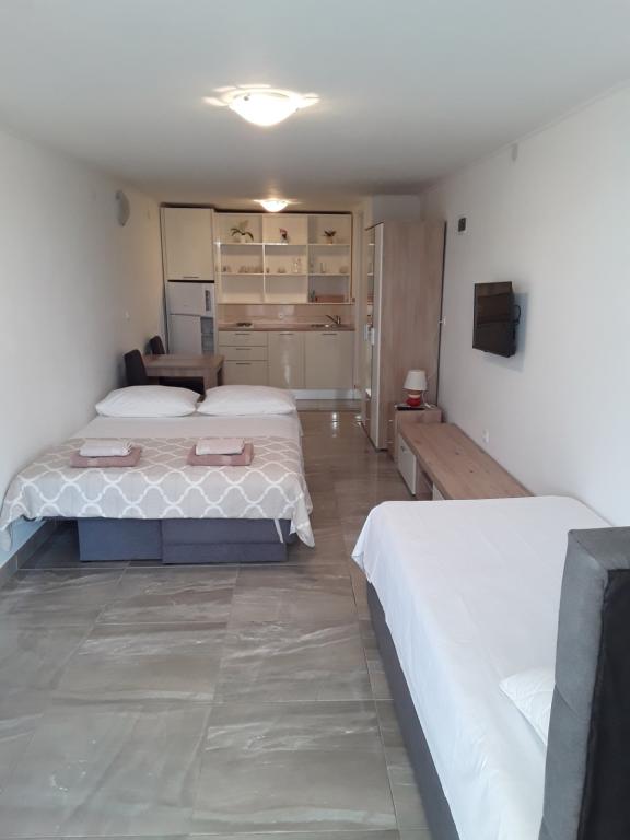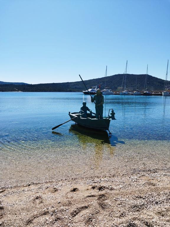 Popolnoma opremljeni apartmaji v mirnem predelu druga vrsta do morja, le 100 metrov od plaže. Apartmaji imajo vse, da uživate na počitnicah in se počutite kot doma, parkirišče se nahaja pred hišo. Apartmaji so od Šibenika oddaljeni 28 km in od Narodnega parka 35 km, od letališča Split (Resnik) pa 30 km.