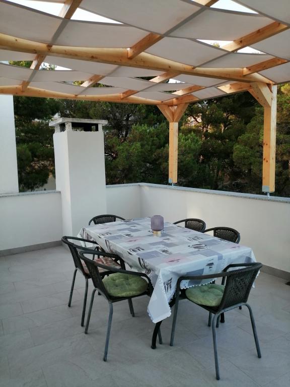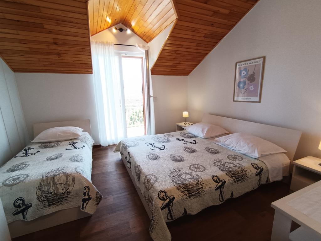 Objekt vsebuje dva popolnoma opremljena in klimatizirana apartmaja v novem delu Primoštena za namestitev od 4 do 8 oseb. Apartma 6 plus 2 primeren za skupne počitnice dveh družin. Apartma ima dve kopalnici s prostorno kuhinjo, tri velike spalnice, veliko teraso in balkon s čudovitim pogledom na morje in stari del Primoštena. Apartma 4 plus 1 se nahaja v pritličju družinske hiše z ločenim vhodom, vsebuje dve sobi, ločeno kopalnico in wc, kuhinjo in verando za družinske počitnice. Pred apartmajem je prostor za sedenje in veliko ograjeno dvorišče. Apartmaji imajo zagotovljeno parkirišče pred hišo. Do centra je 10 minut hoje, do prve plaže pa 5 minut hoje. Hišni ljubljenčki do 5 kg so dovoljeni z doplačilom 10 eur/noč. Poleg teh dveh apartmajev oddajamo počitniško hišo z bazenom KATE&MARE, ki se nahaja v Dalmatinski Zagori v mestu Vrgorac in je na voljo tudi na spletni strani Apartmaji Vrgorac. Veselimo se vašega prihoda!