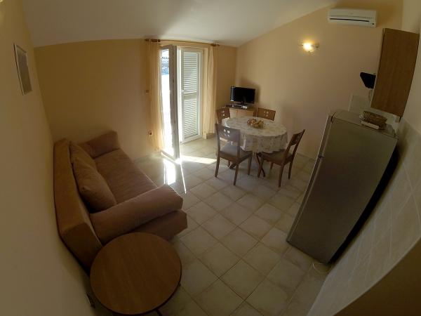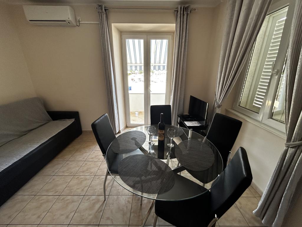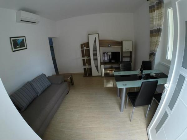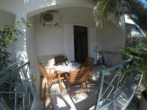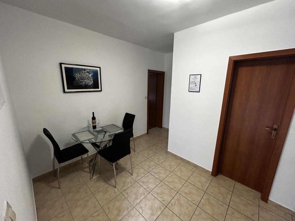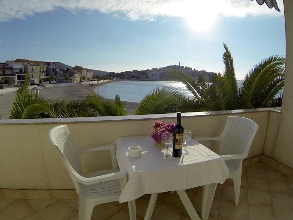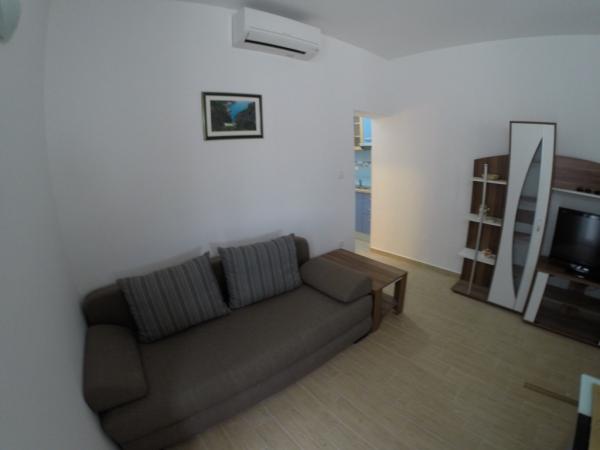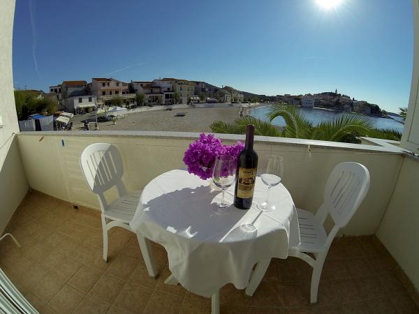 Turistična taksa je vključena v ceno. Dokument o potrditvi rezervacije ob rezervacijiOb prihodu v apartma goste pričaka paket dobrodošlice, sestavljen iz pijače dobrodošlice in steklenice vina. Apartmaji vključujejo posteljnino in brisače, ki se menjajo vsakih 7 dni. Gostje imajo tudi možnost uporabe pralnega stroja enkrat tedensko, ob predhodni najavi. Vse namestitvene enote imajo balkon ali teraso s pogledom na morje, internet, satelitsko TV, klimo in varovano parkirno mesto.