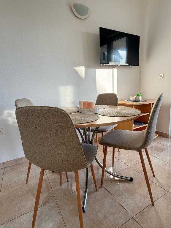 Zelo lepo, čisto stanovanje z veliko teraso in čudovitim pogledom na morje! Lastnica Nada s sinom Ivanom in snaho Andreo je bila zelo prijazna in ustrežljiva. Do starega mestnega jedra in morja z najlepšimi plažami Primoštena lahko pridete v približno 5 minutah hoje. Imeli smo čudovite počitnice in lahko priporočamo apartma!