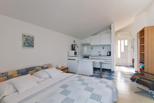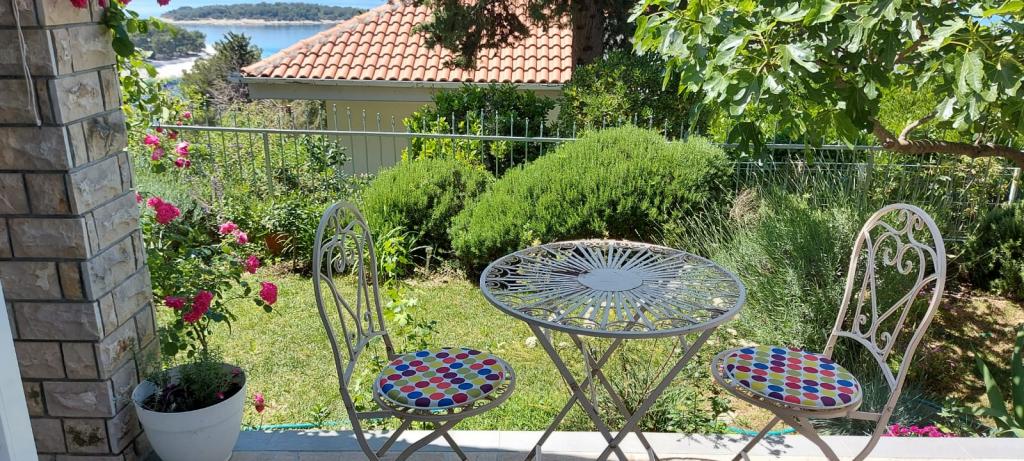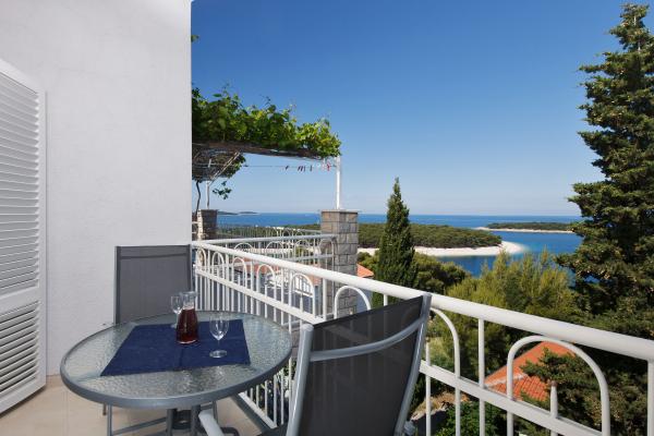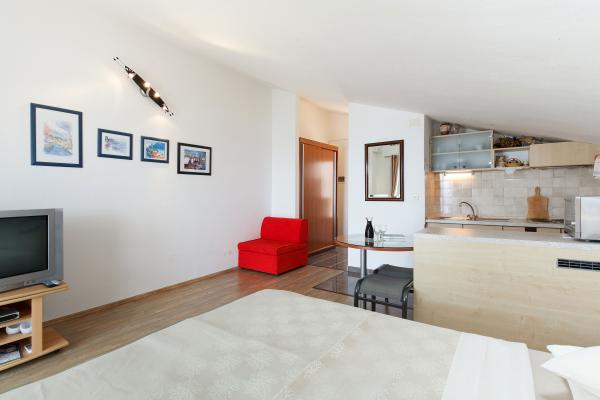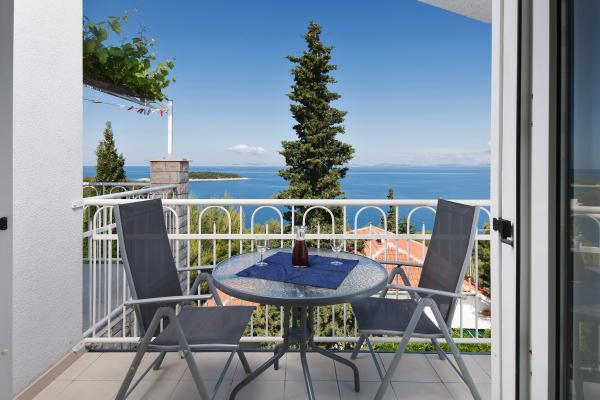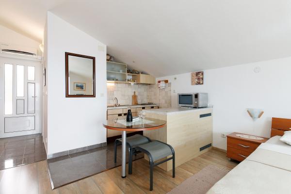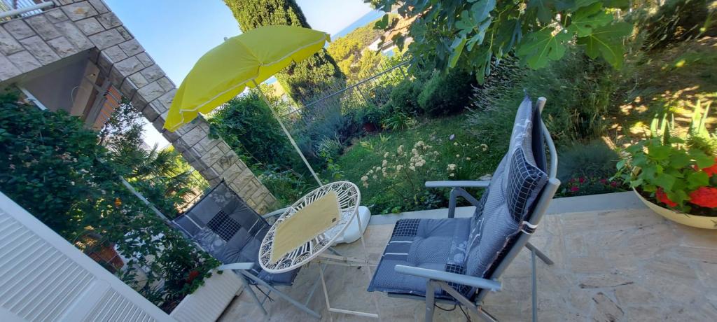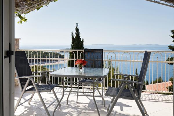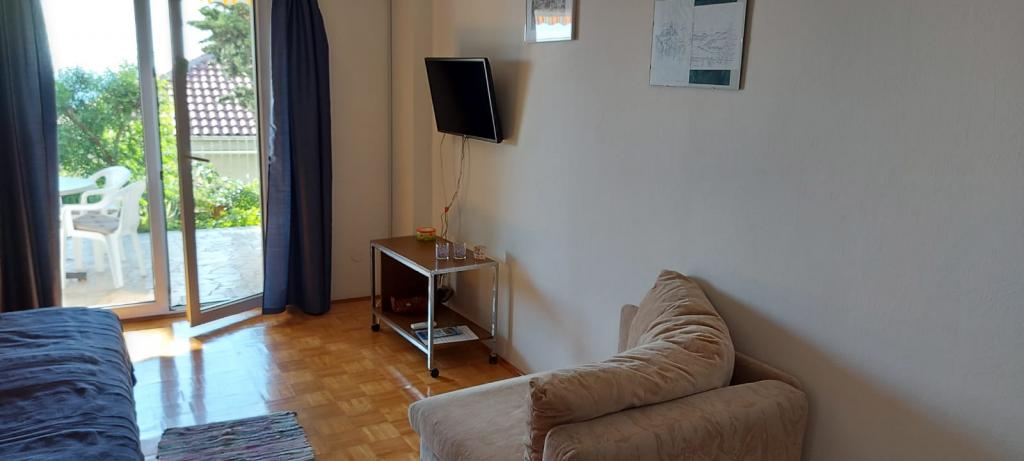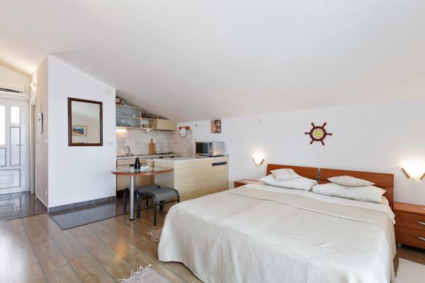 Apartmaji so lepo urejeni v hiši, ki se nahaja na hribu z lepim razgledom. Skalnata plaža ima 5 minut do plaže za otroke 7 min. Center 10 minut peš.