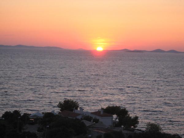 Hiša se nahaja 3 km izven mesta Primoštena in 20 km od Šibenika, na mirni lokaciji, obdan z oljkami, borovci in morje. Obstajata dve lepe plaže s kristalno čisto vodo, 100 metrov od hiše. Apartmaji Sunset se nahaja v mansardi hiše, opremljeno s klimatsko napravo. Apartma 2 +2 ima spalnico, dnevno sobo s kavčem, tako da lahko z lahkoto sprejme do 4 osebe, kuhinjo in kopalnico. Pred stanovanje je velika terasa s pogledom na morje. Studio apartma ima spalnico, kuhinjo in kopalnico in balkon s pogledom na morje in zaliv. Restavracija in bar na plaži so 200 m stran. Tudi mesto je ena izmed najlepših in najbolj priljubljenih turističnih krajev na hrvaški obali. Tukaj lahko najdete več trgovin, nočnimi bari, restavracije, klube, plaže in vse ostalo, kar potrebujete, da imajo velik praznik.