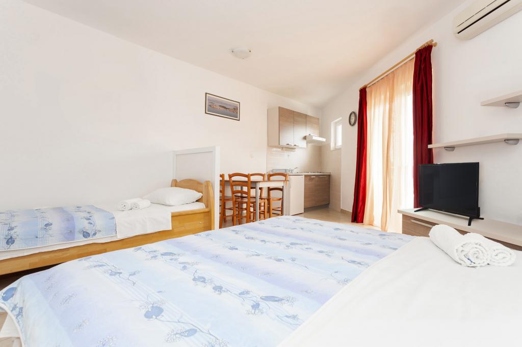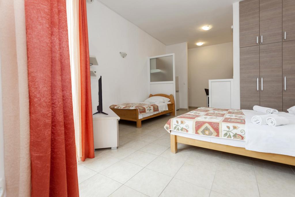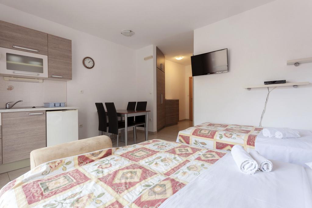 Apartmaji na idealni lokaciji, saj nikjer v bližini (2 dolge plaže, trgovine, inf. Tourist, bencinska postaja, menjalnica, lekarna, pekarna, mesar), medtem ko ni pešce, tako da ponoči je tišina. Sobe čiste, dobro opremljene z lepim pohištvom, velike postelje, veliko omar, balokony, tudi v kopalnico pralni stroj. Parkirišče pred stavbo. Seveda vam priporočam, Primošten, zelo dolge plaže po vsem površin, tako da tudi kot veliko ljudi, da bodo vsi našli dovolj prostora na plaži v sebi. Apartmaji so vredni priporočajo.