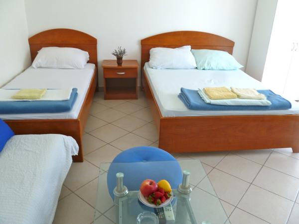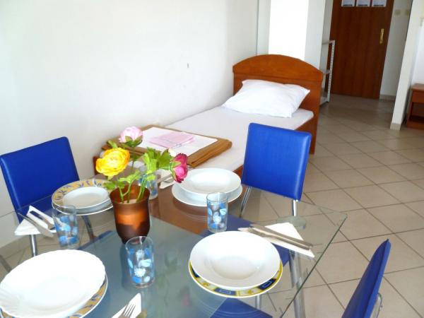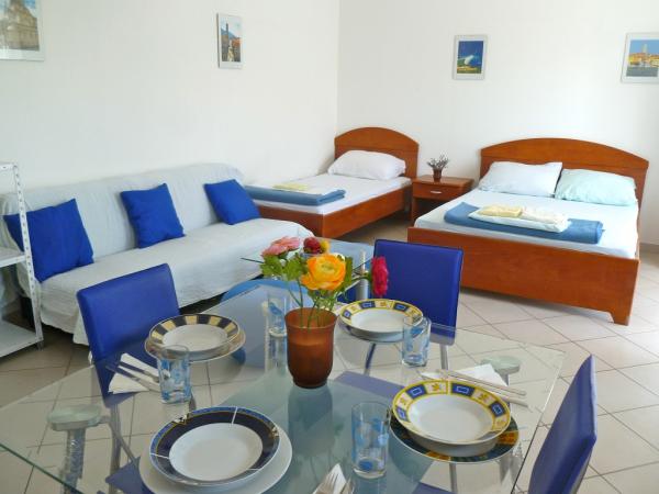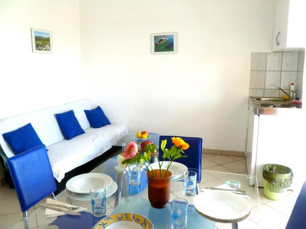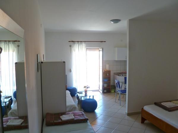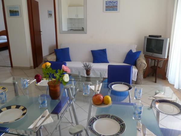 Stanovanje je bilo čisto in urejeno, pogled s terase nepopisen, na jutranji kavi s takim razgledom, res čarobna. Šef in njegov brat sta zelo ustrežljiva, prijetni ljudje. Blizina morja, centra, plaže, trgovine, lekarne, vse je na dosegu roke. Mislim, da se za tako ugodno ceno, glede na bližino in pogled s terase, ki se spušča, res splača priti. Zagotovo še pridemo!