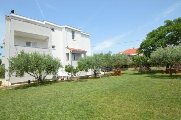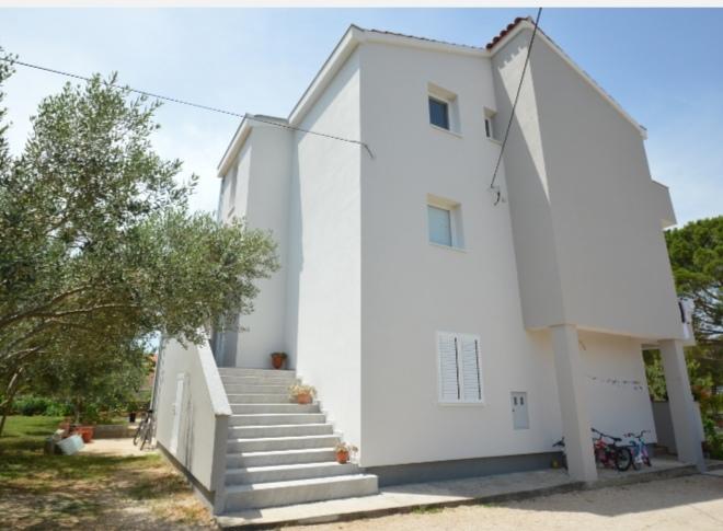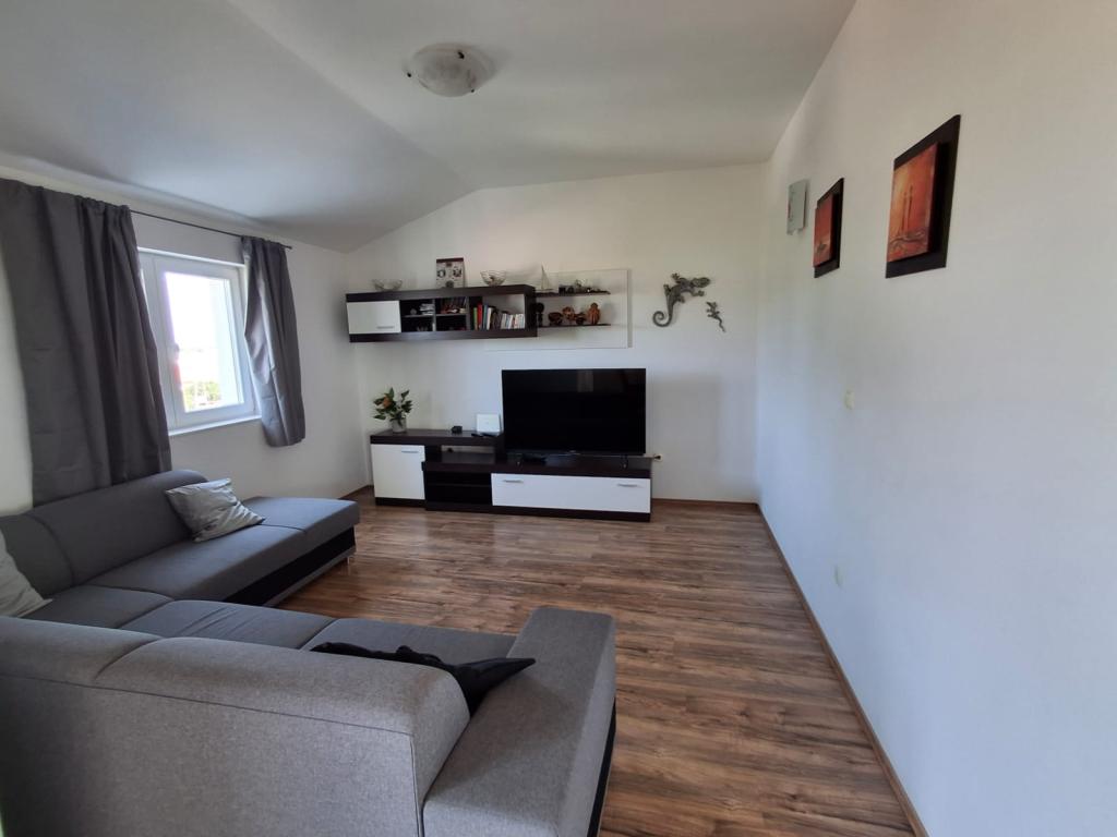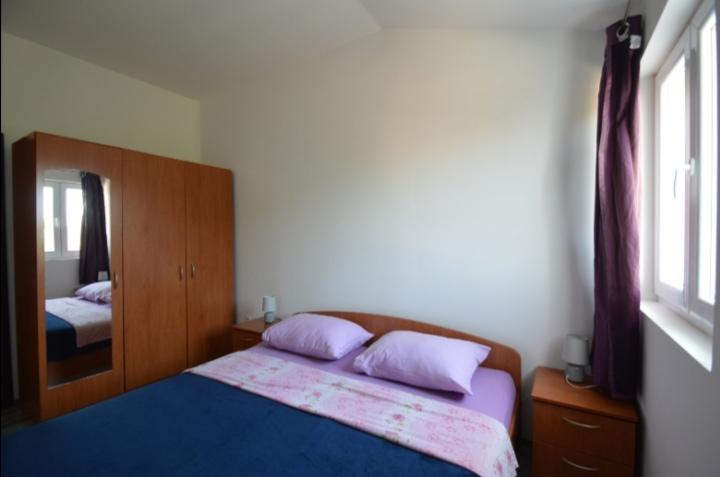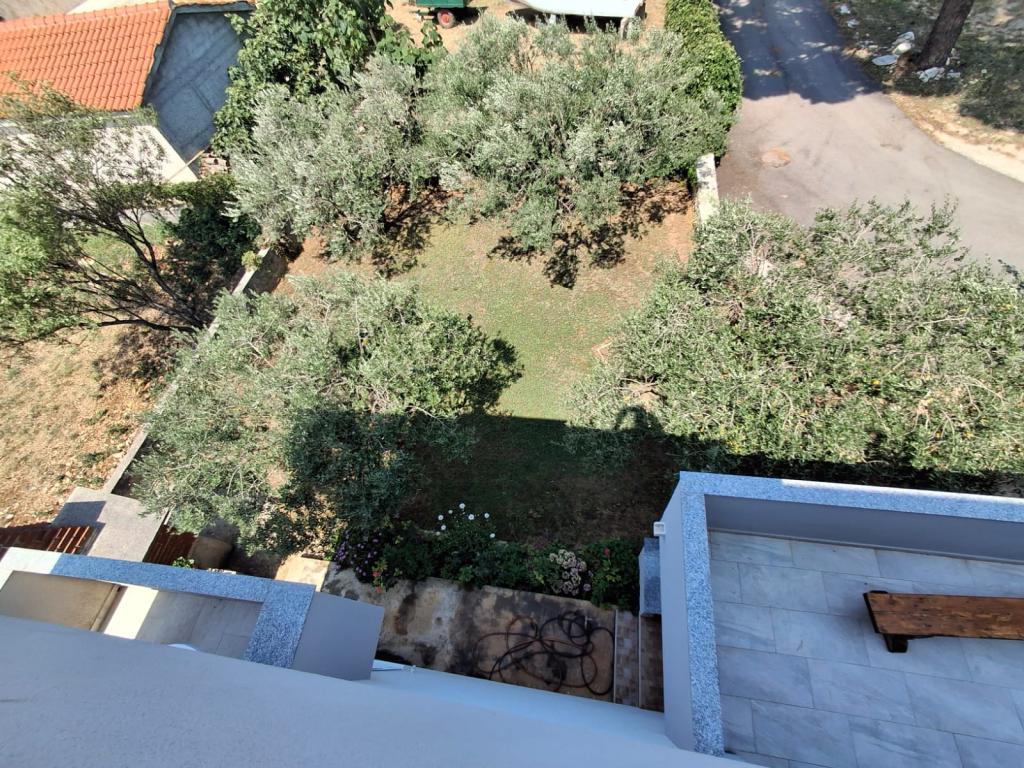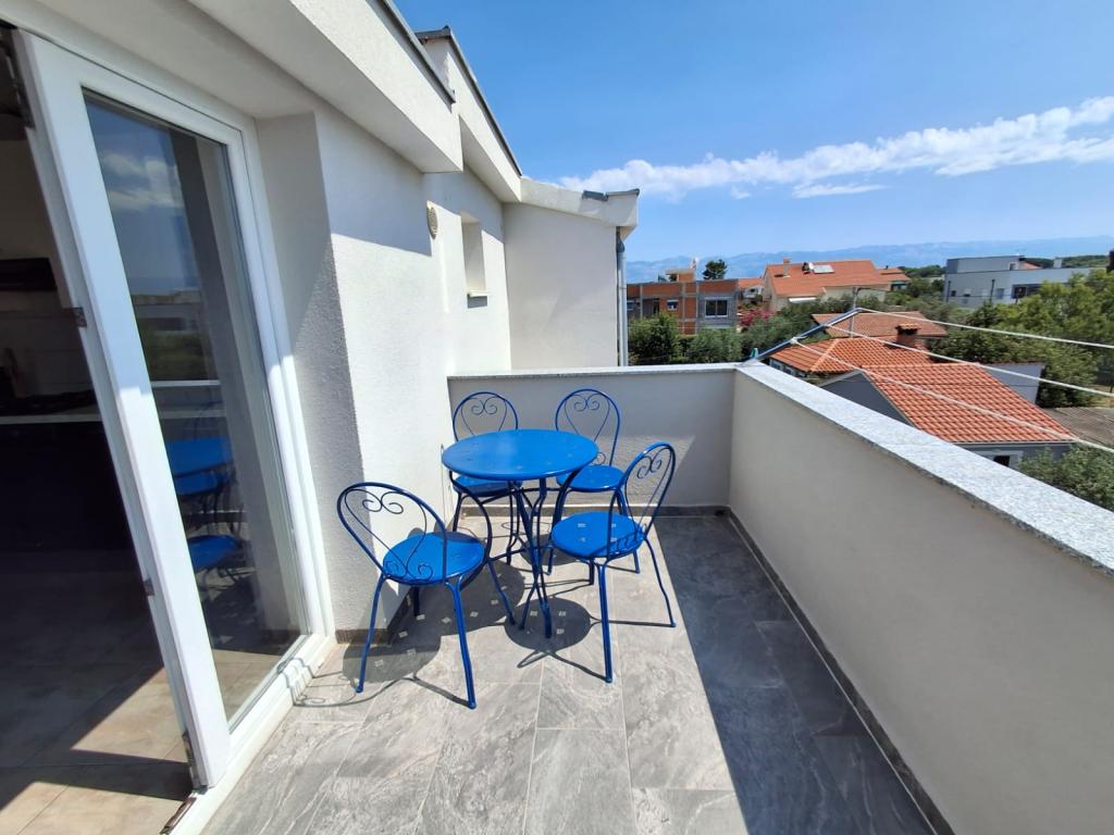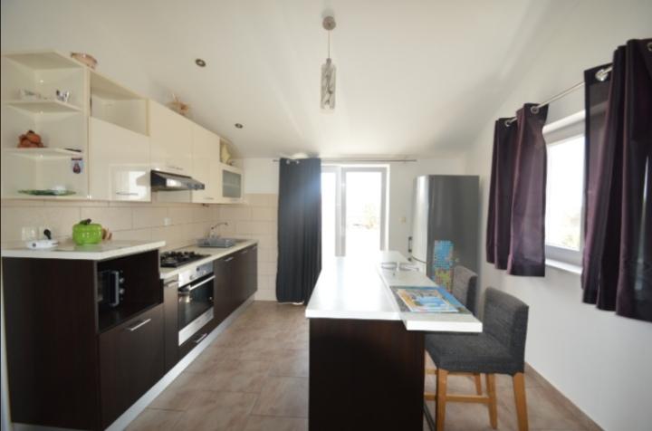 Prostorno mansardno stanovanje z dvema terasama s pogledom na morje, 5 min hoje od plaže in 15 min od centra. Ima prostorno dvorišče in parkirišče, z brezplačno uporabo žara.