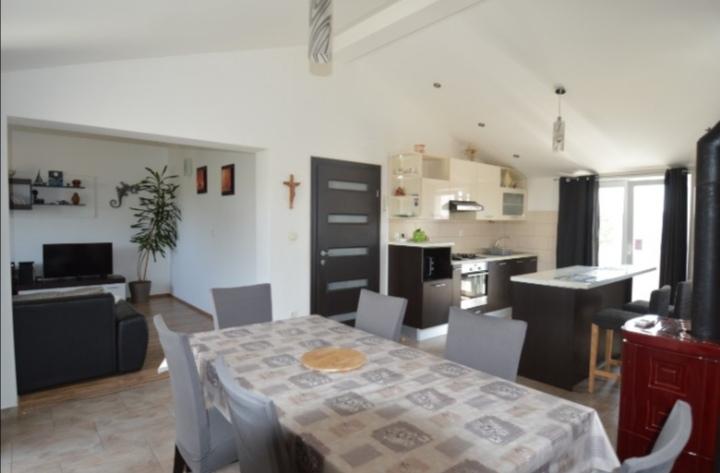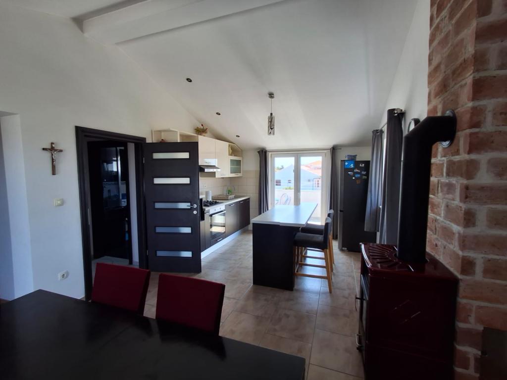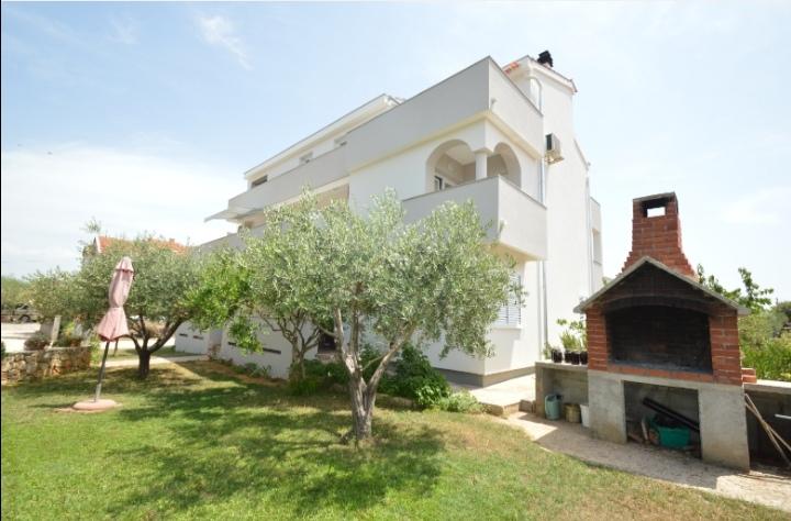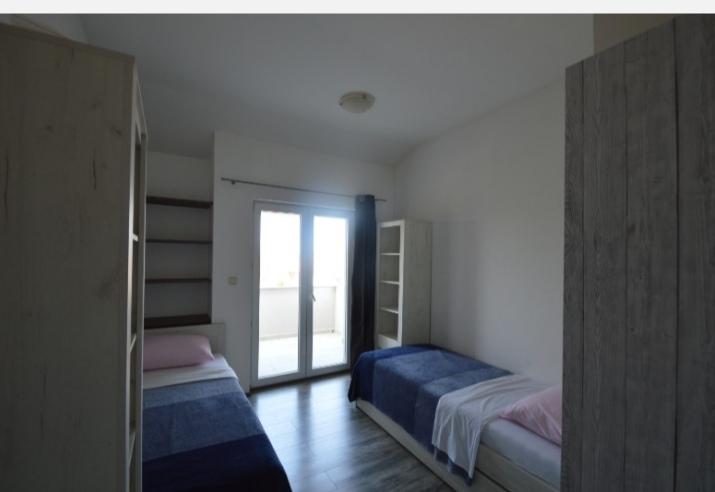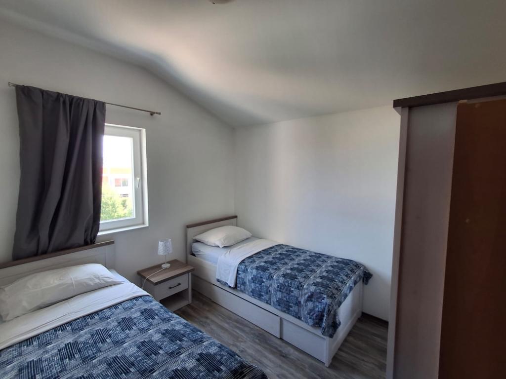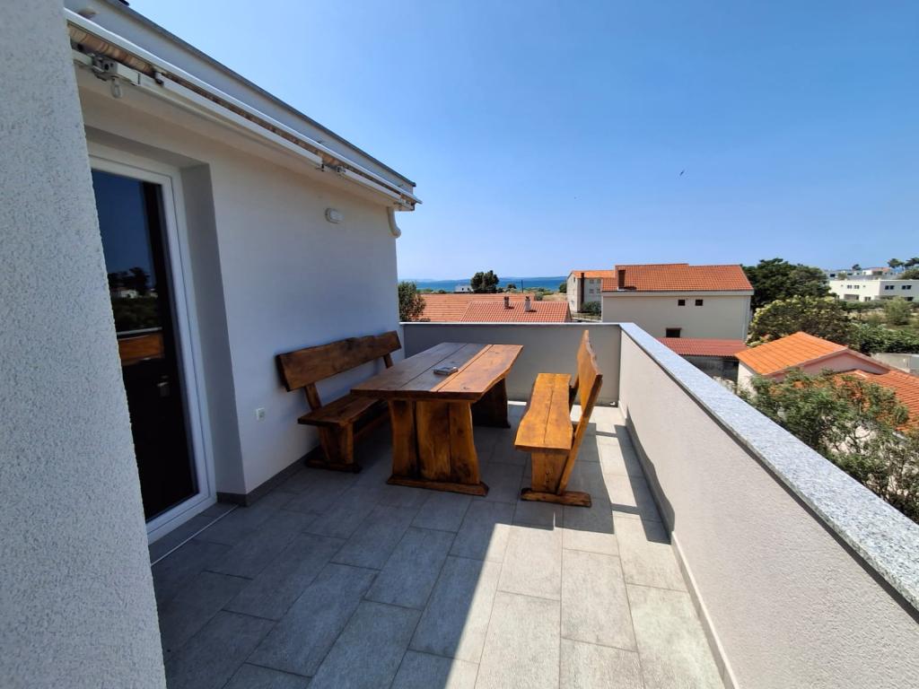 Prostorno mansardno stanovanje z dvema terasama s pogledom na morje, 5 min hoje od plaže in 15 min od centra. Ima prostorno dvorišče in parkirišče, z brezplačno uporabo žara.
