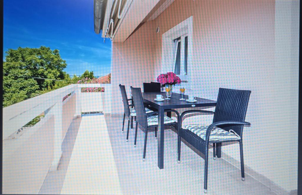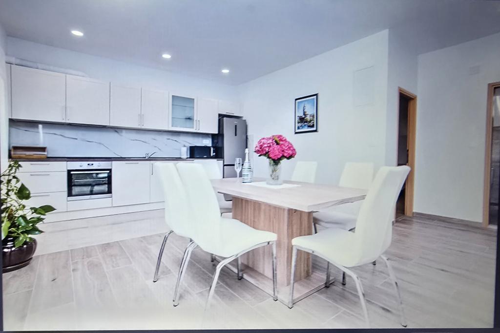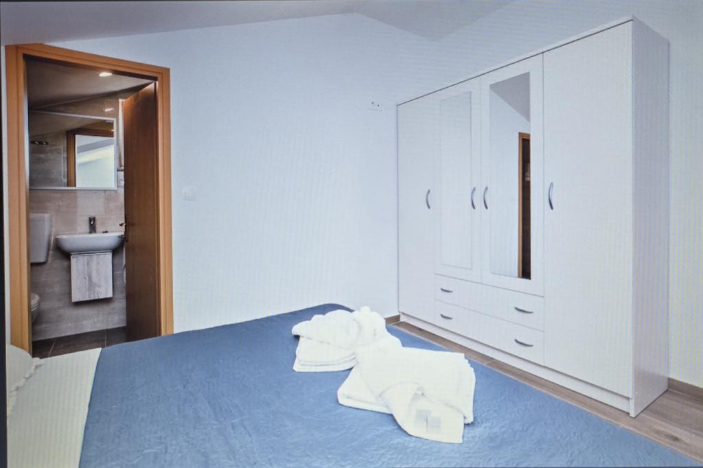 Novo opremljeno stanovanje s kuhinjo, dnevno sobo, dvema spalnicama in dvema kopalnicama. Obe sobi sta opremljeni z zakonsko posteljo, ena od sob ima ločeno stranišče, dnevna soba pa ima dodatno ležišče (raztegljiv kavč). Kopalnica ima tuš in pralni stroj. Apartma se nahaja v 1. nadstropju hiše, ki ima 10 m2 veliko pokrito teraso, ki je delno pokrita. Stanovanju pripadata 2 parkirni mesti. Okoliške plaže so peščene in plitke, primerne za majhne otroke. Nahajamo se v majhnem mestu Privlaka blizu Zadra. Apartma se nahaja 3 minute hoje od plaže in blizu centra Privlake (10 minut hoje) ter obmorske promenade skozi celotno mesto. V bližini sta mesti Nin in Zadar. Veselimo se vašega prihoda.