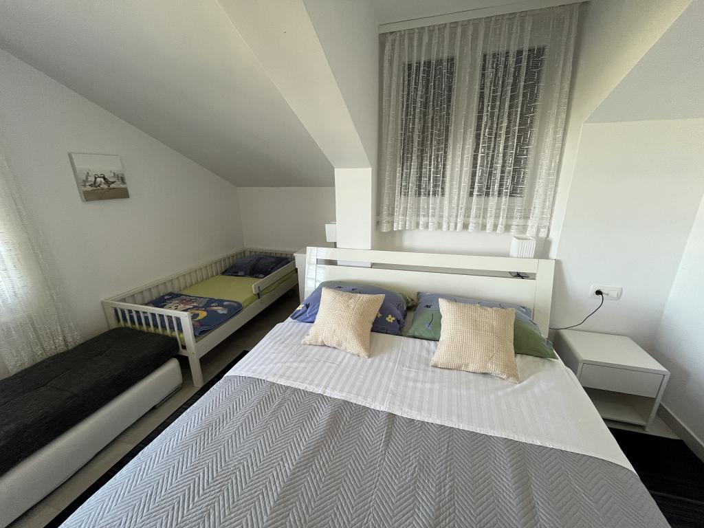 Apartmaji Abela, novi apartmaji v družinski hiši z ločenim vhodom, popolnoma opremljeni za prijeten dopust. Sestavljeni so iz kuhinje z dnevno sobo, ene spalnice, kopalnice, velike terase z odprtim pogledom na morje. Manjši apartma ima pogled na morje, nima pa terase. To je namestitev za vas, če potrebujete miren dopust v bližini peščenih plaž s toplim morjem.