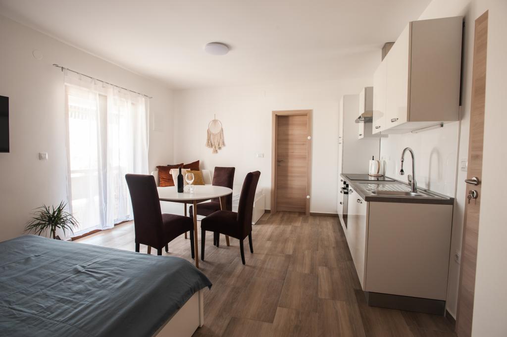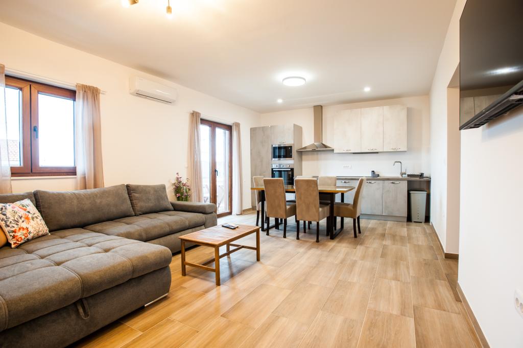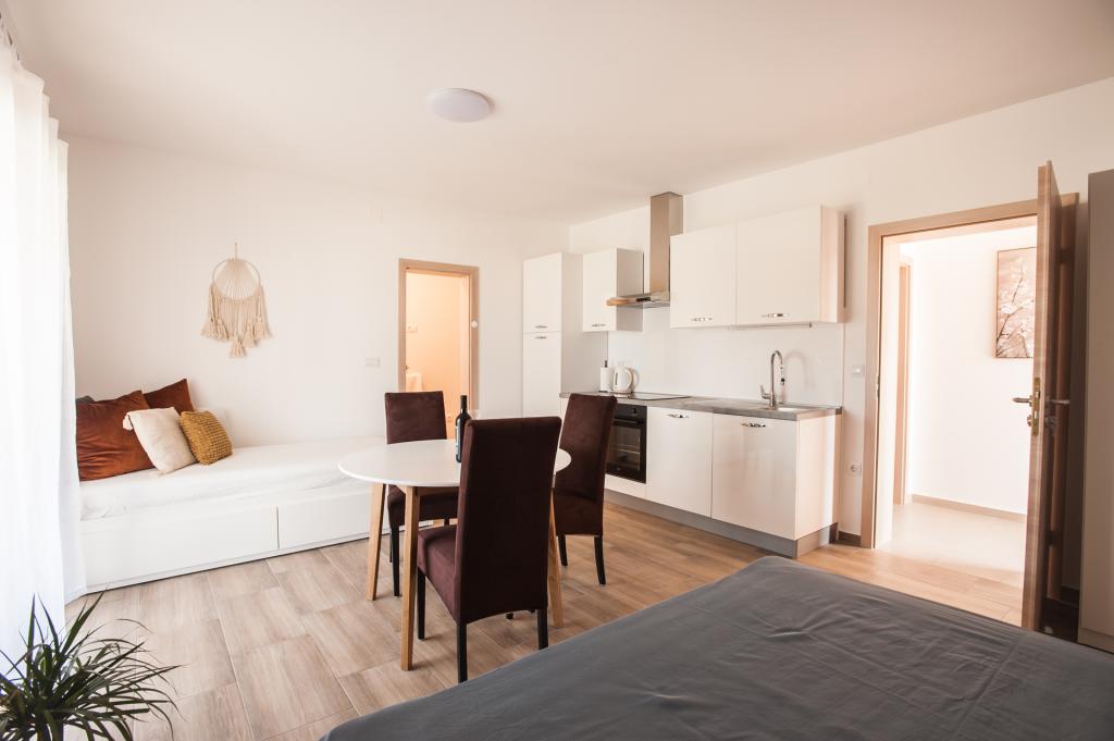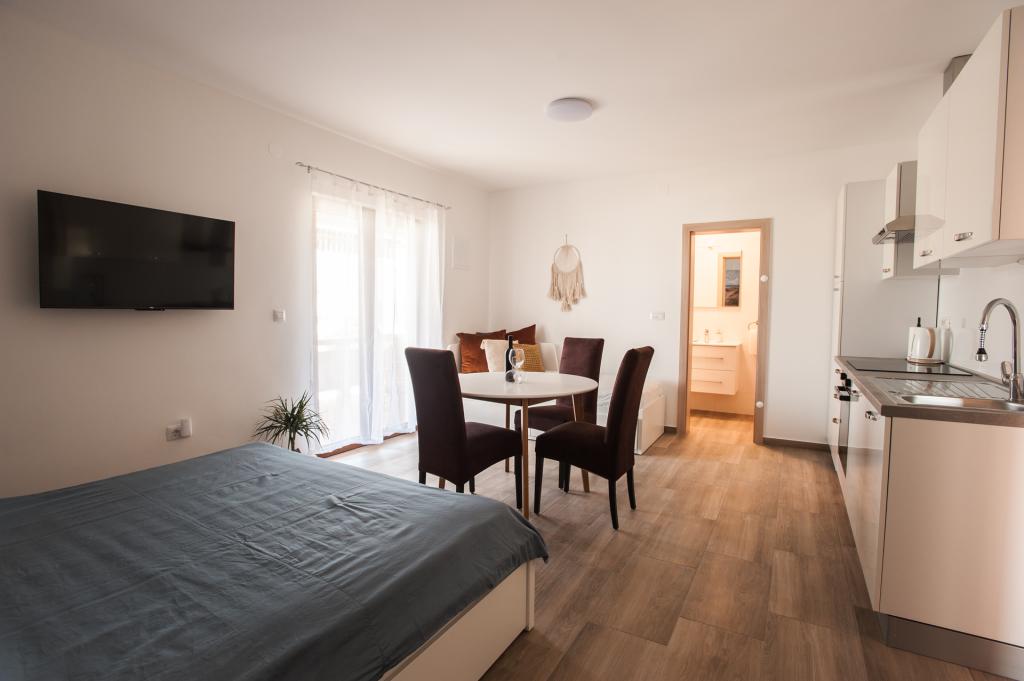 Apartma LaPrivlaka se nahaja le 200 metrov od morja. Apartma se nahaja v prvem nadstropju zasebne hiše in ponuja izjemno udobje in zasebnost. Gostom je na voljo ločen vhod, ki vodi na prostoren balkon, opremljen z udobno sedežno garnituro in sušilcem perila. V notranjosti apartmaja se nahaja popolnoma opremljena kuhinja z bogatim naborom posode, jedilnica pa nudi prijeten prostor za obroke s TV. Lastna kopalnica je opremljena s prho, pralnim strojem, straniščem in sušilcem za lase. Spalnica apartmaja izžareva prostornost in udobje, z udobno zakonsko posteljo in dodatnim ležiščem dimenzij 80x200 cm, ki se lahko uporablja kot kavč ali tretje ležišče po želji gosta. Klimatska naprava vam omogoča nastavitev temperature glede na vaše želje. Gostje tega apartmaja imajo dostop do brezplačnega zasebnega parkirišča, ki jim zagotavlja varno in cenovno ugodno namestitev za njihova vozila. Stanovanje je bilo leta 2023 popolnoma prenovljeno, kar pomeni, da so vsi aparati novi.