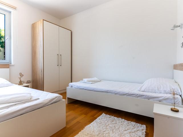Apartma My Nest se nahaja v mirnem delu Privlake (Glavanci), 600 m od prve plaže in 800 m od plaže Bilotinjak, ene najlepših peščenih plaž v tem delu Dalmacije. Ponujamo zasebno parkirišče pred vsakim apartmajem in edinstveno skupno dvorišče s skupno kuhinjo in žarom, teraso, 100 m2 velikim bazenom, teraso za sončenje ob bazenu, jacuzzijem, savno z vonji mediteranskega vrta. Vsak apartma ima dnevno sobo, popolnoma opremljeno kuhinjo, dve spalnici in kopalnico ter teraso ali balkon. Od Zadra smo oddaljeni le 12 km, zgodovinsko mesto Nin pa je oddaljeno le 3 km. Nahajamo se na idealni lokaciji, če želite obiskati Kornate, Narodni park Krka, Narodni park Plitviška jezera, Pag, Ugljan in številne druge znamenitosti ter hkrati uživati v popolnem miru pristnega dalmatinskega mesta.