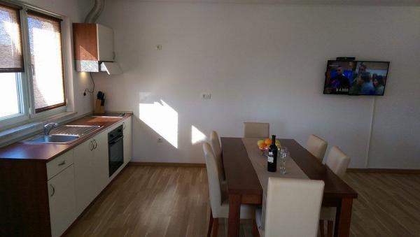 Izposodili smo dva apartmaja, dva velika. Prvi je bil v 1. nadstropju in je bil v dobrem čistem stanju obnovljen pred približno štirimi leti. Mislim, da je kuhinja malo premajhna, da kuhamo pet. Samo dve štedilniki. Balkon je lep, odličen za sedenje in dolgotrajno z veliko mizo in dovolj stoli. Tukaj imate lep pogled na vrt in bazen. Drugi je bil prvič najeti v pritličju po prenovi. Apartma je zelo sodoben, in opremljeni z veliko občutljivostjo za optiko. Kaj je super tukaj, Ima popolno steno z omaricami. Tukaj nimaš absolutno nobenega problema z oblačili. Terasa ima dovolj prostora in lepo sedi. Bazen je super, Bili smo konec avgusta in imeli bazen razen za nekaj izjem, izključno za nas, otroci so lahko besni in naredili nesmisel. Lastniki so zelo koristni in prijazni Ante je vozil z našimi moškimi, da bi pokazali plaže in nakupovalne možnosti. Vrh z restavracijo Amico v Privlaki je bil dober, a zelo obremenjen in hrupen, hrana je v redu. Obisk in sprehod na plaži v Viru je zelo priporočljivo. Neposredna plaža, hoda je zelo ozka (pesek) Naš absolutni najljubši je stranski zaliv v mestu Zaton Holiday Resort. Tukaj je nudistični odsek na levi strani, preostanek pa se pomeša z družinami, pari in vsemi narodnostmi. Imeli smo nevihtni dan Tukaj smo bili v Ninu in imajo kitesurfer gledali med svojimi spektakularnimi skoki. Končno, morate reči zelo sproščujoče in tiho. Plaže, kot sem rekel skoraj ves pesek ali gramoz, pomešan s peskom. Samo priporočljivo! Hvala Ante za vse.