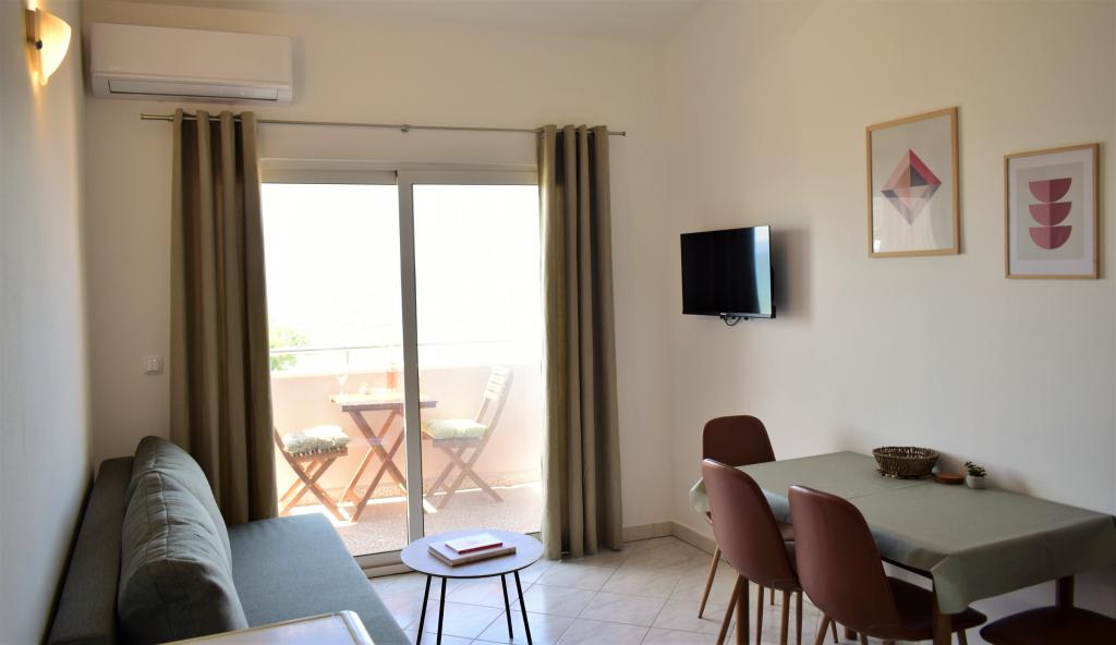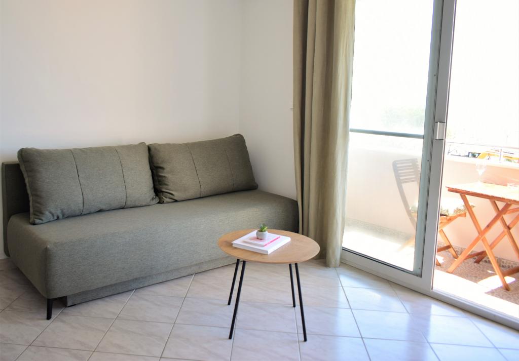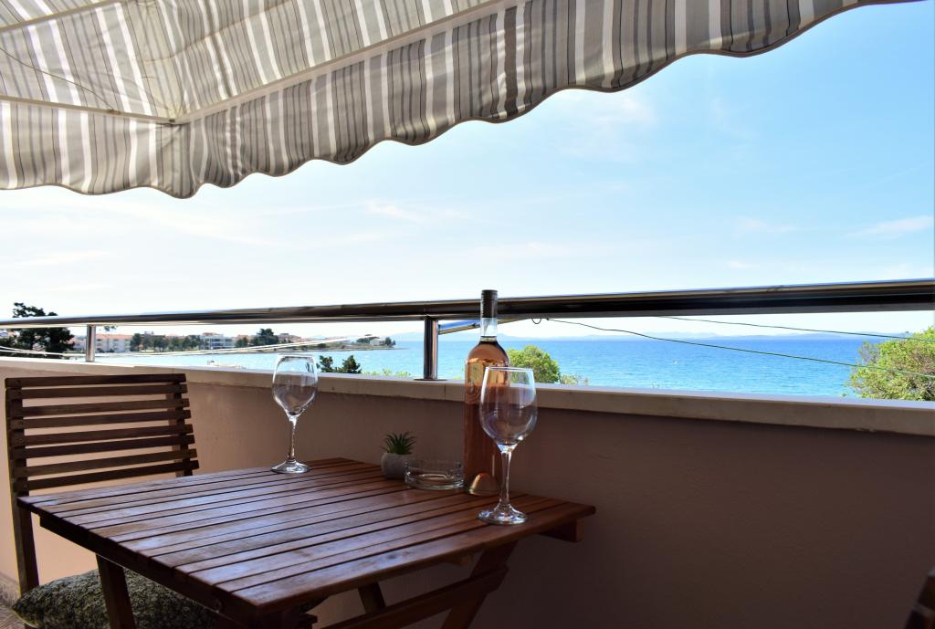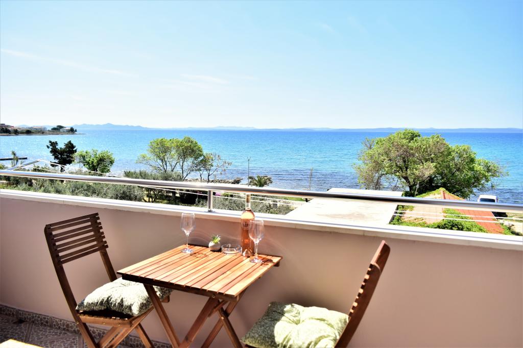 Apartma s čudovitim pogledom na morje. Prijazni gostitelji. Plaža tik pod apartmajem, peščena plaža 2 minuti hoje. Kavarne, hitra prehrana in restavracije so ob plaži.