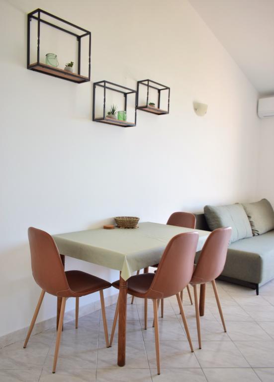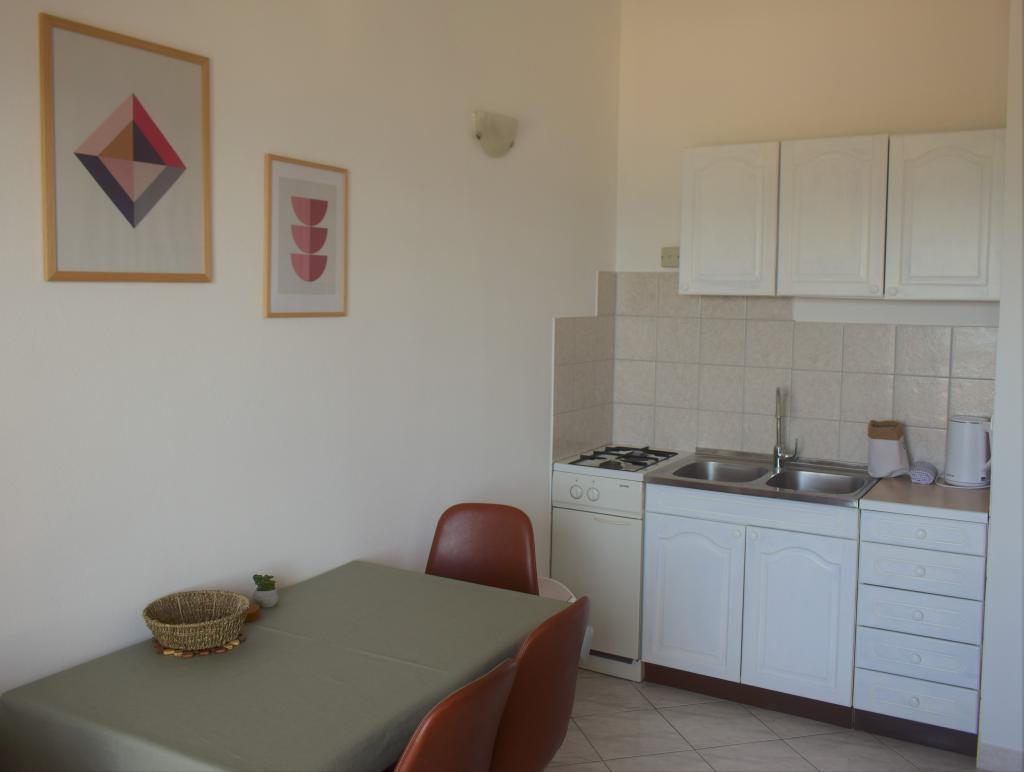 Prijetni apartmaji v mirnem predelu, v prvi vrsti do morja. Objekt se nahaja v 10 minutah hoje od vseh potrebnih objektov za prijeten dopust, kot so trgovina, lekarna, ambulanta, pošta itd. Plaža se nahaja v neposredni bližini objekta, le 50 metrov stran. Objekt ponuja tudi parkirišče, sami apartmaji pa se nahajajo v drugem nadstropju objekta, od koder lahko uživate v čudovitem pogledu na morje in otoke.